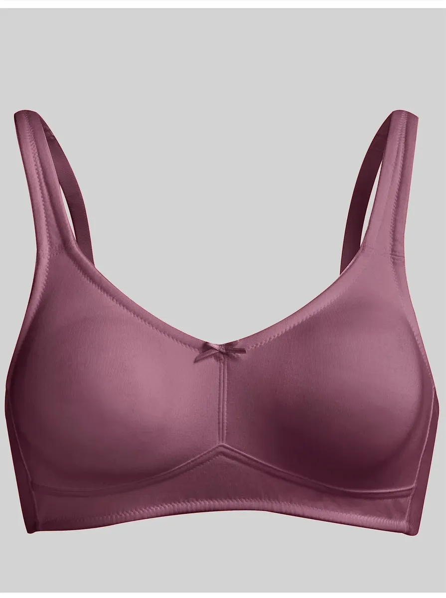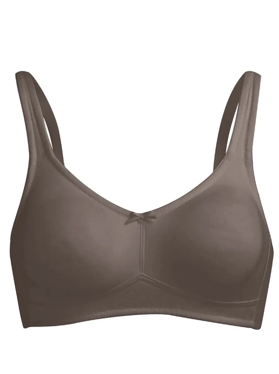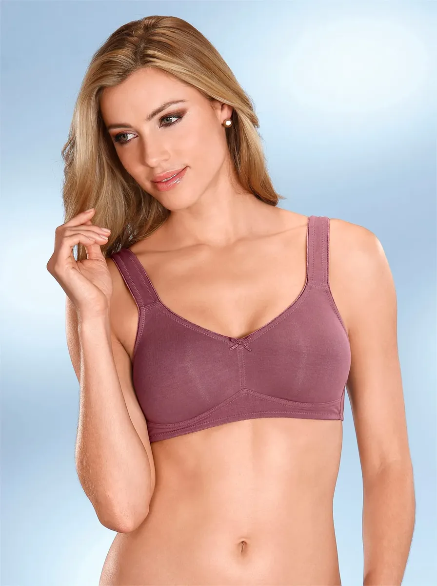 Чувствуйте себя комфортно в повседневной жизни: бюстгальтер без косточек из ткани васпур с высоким содержанием хлопка и двойными формованными чашками. Бретели регулируются сзади. 95% хлопок, 5% эластан.