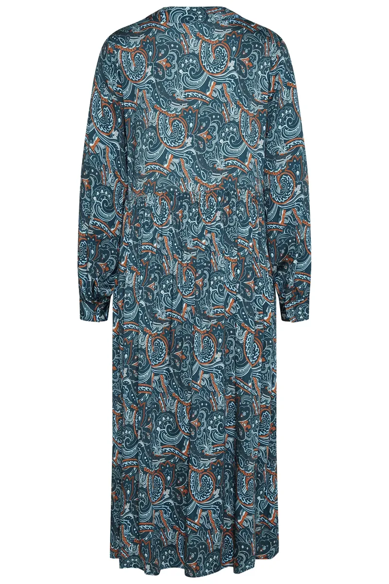 Современный крой и модные узоры. Платье-блузка с узором пейсли и круглым воротником оснащена планкой на полупотайные пуговицы. Платье-макси расширяет ваш гардероб за счет предмета одежды, который можно комбинировать разными способами. Будь то свободное время или работа в офисе, это платье всегда будет изящно смотреться на фигуре.