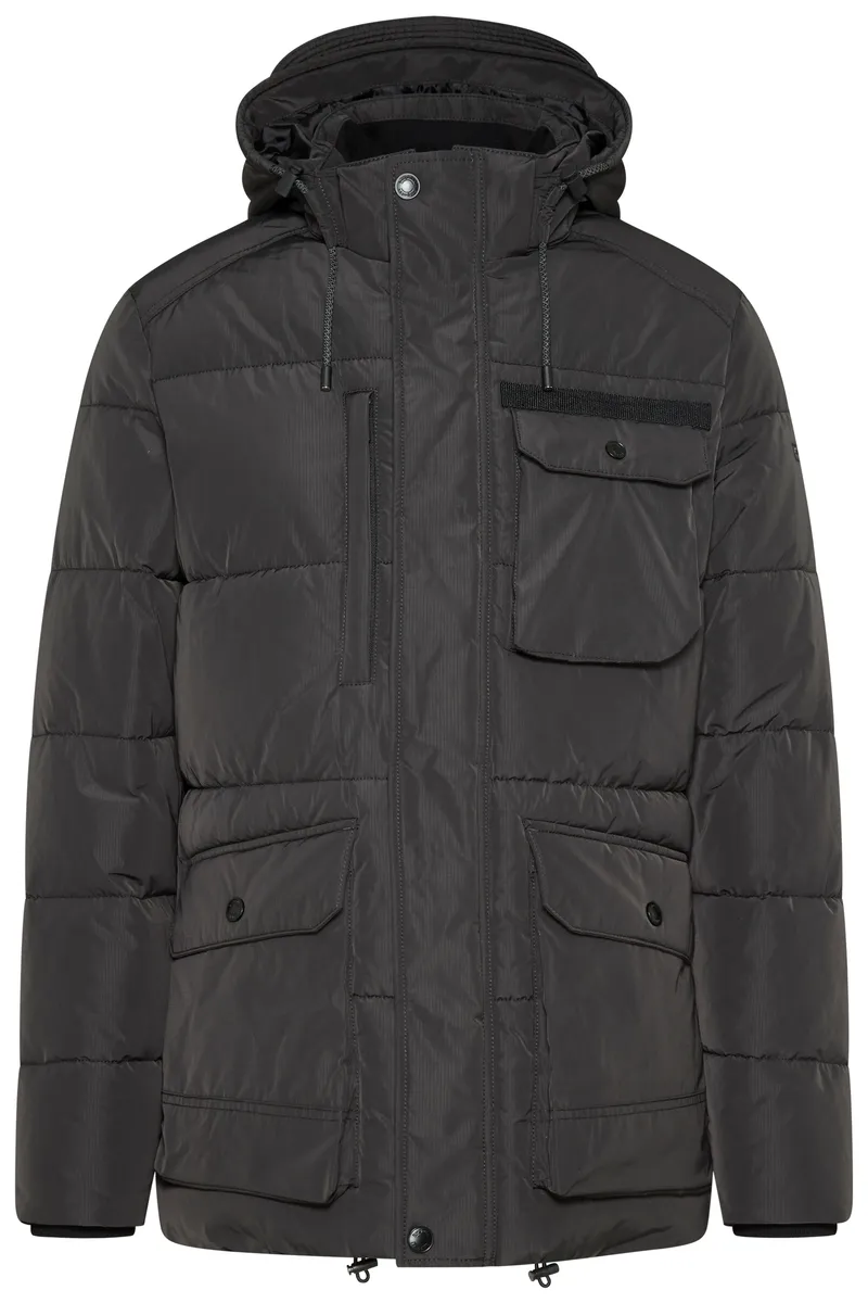 Прочная стеганая куртка незаменима для зимних прогулок. Современный воротник-стойка и съемный капюшон – важные преимущества этой куртки. Два накладных кармана с клапанами, два нагрудных кармана, а также потайной карман на молнии и внутренние карманы обеспечивают достаточно места для хранения вещей. Куртка полностью на подкладке и имеет металлический вид.