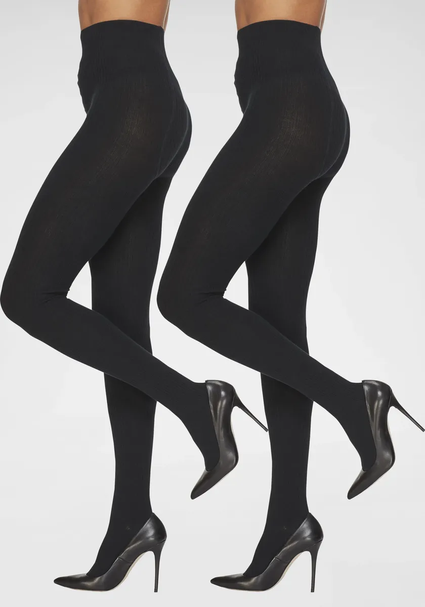 Вязаные колготки Lavana (2 шт.) модной рубчатой ​​вязки, черный