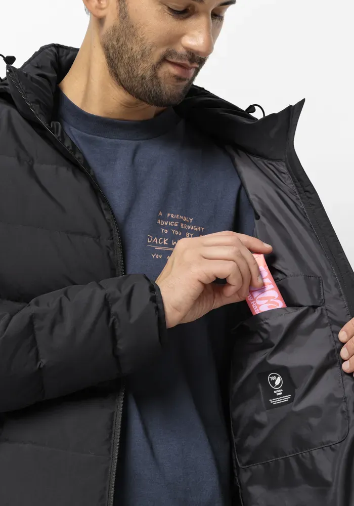 Пуховик Jack Wolfskin "COLONIUS JKT M", с капюшоном, черный