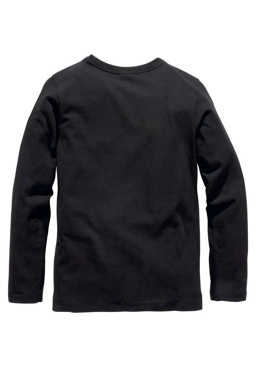 Модная рубашка с длинными рукавами от KIDSWORLD с принтом. С обычным широким вырезом. Вырез горловины имеет ребристую манжету. Благодаря эластичному трикотажу верх мягкий и удобный.