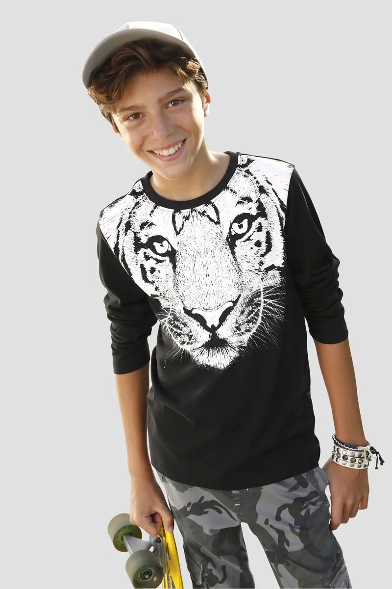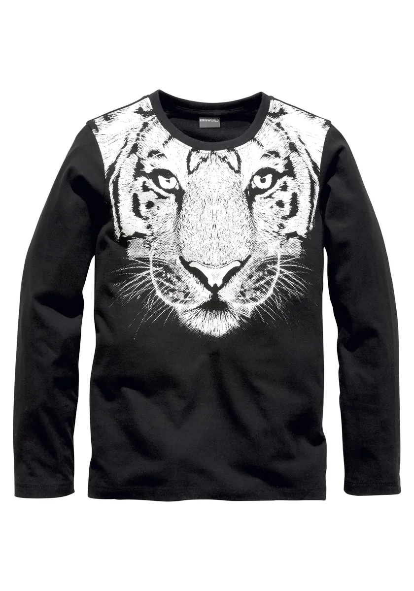 KIDSWORLD рубашка с длинными рукавами "WHITE TIGER", крупный принт, черный