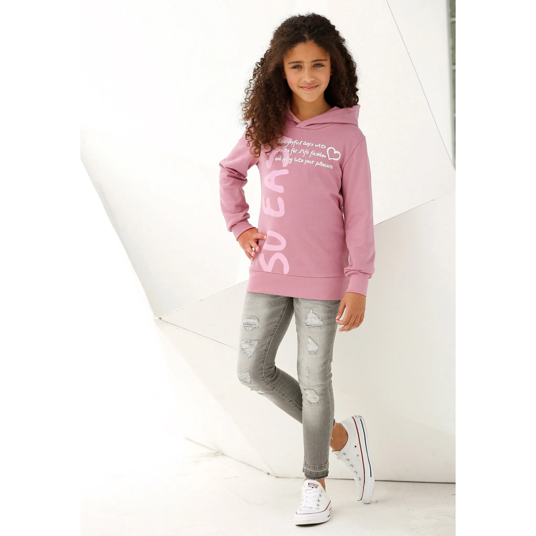 KIDSWORLD рубашка с капюшоном "SO EASY - Print", удлиненная форма, розовый