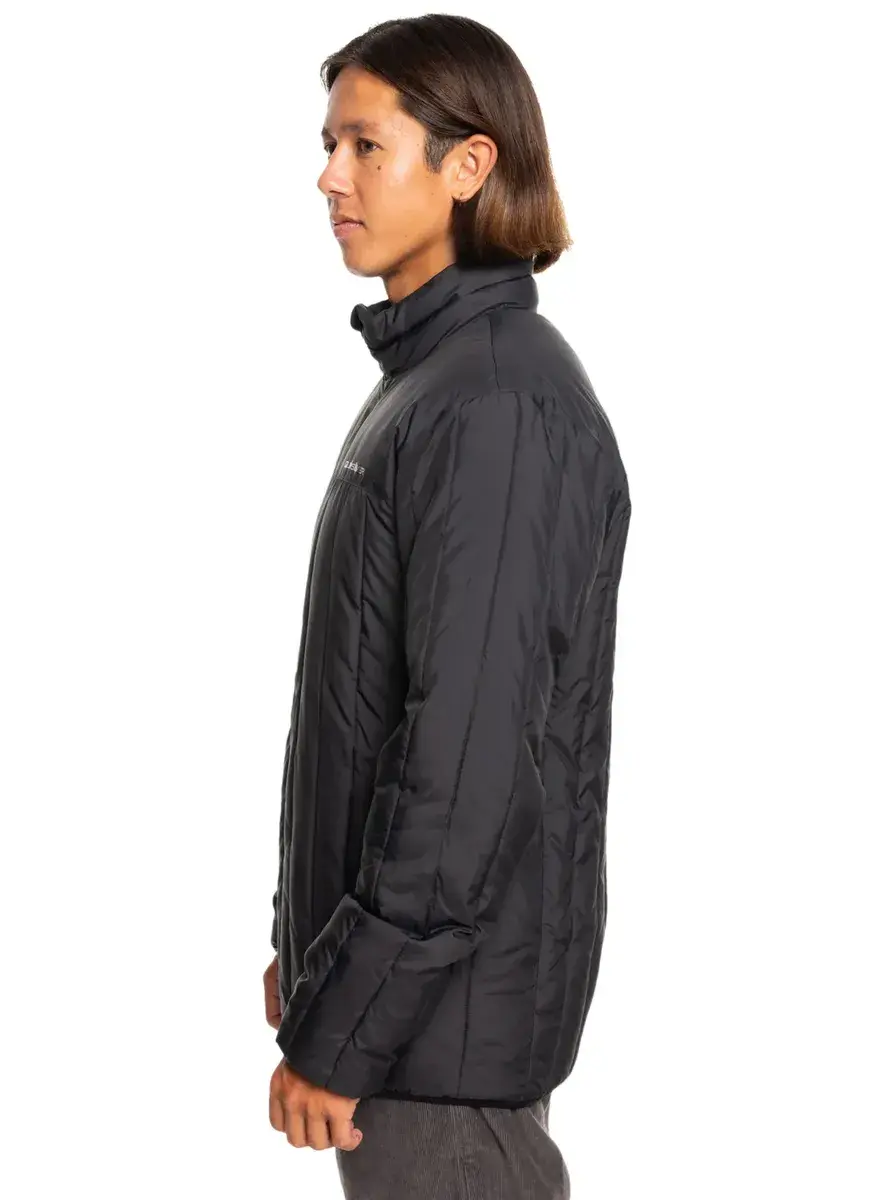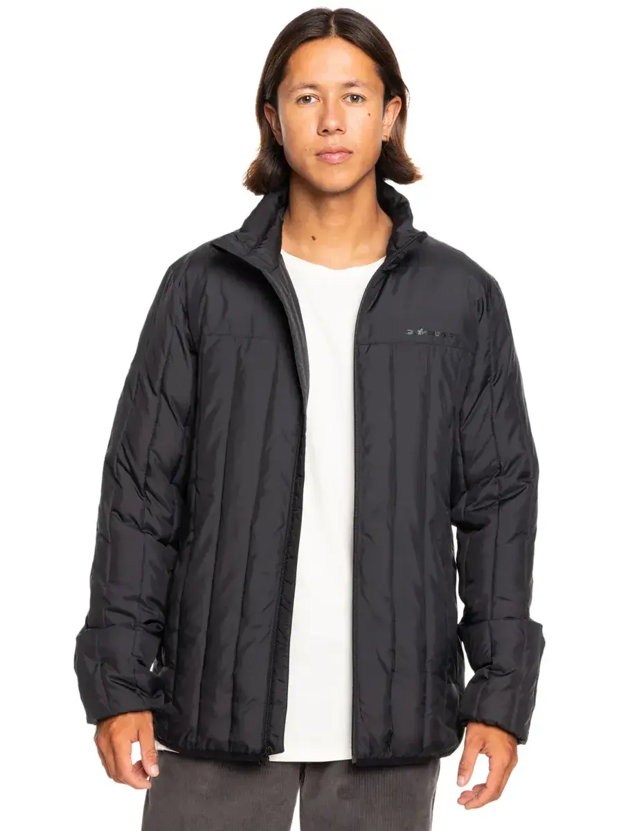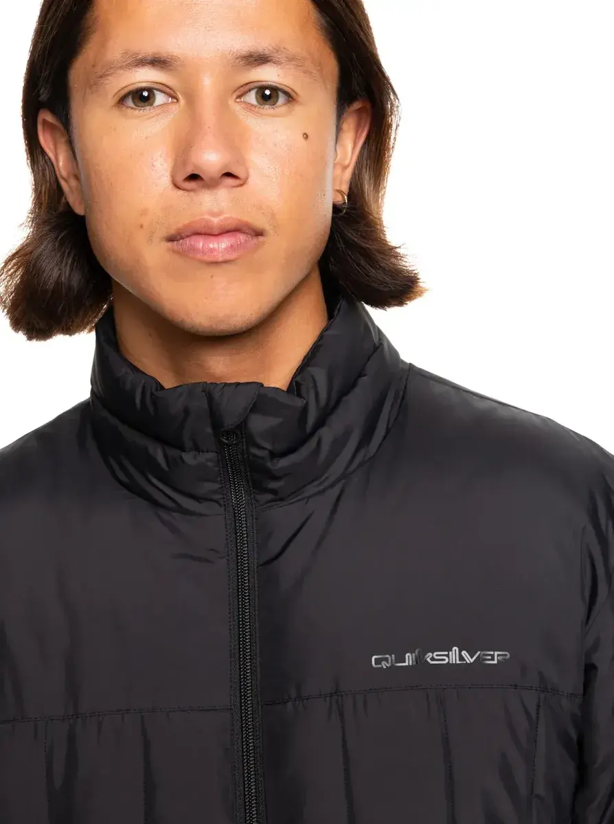 Стеганая куртка мужская. Особенности этого изделия: Экологичный материал: Ткань из переработанного полиэстера [73 г/м2], Классический крой, Воротник-стойка, Длинные рукава, Потайная боковая молния, Застежка-молния спереди, Подкладка из тафты, Вертикальная стежка внизу, Эластичная ткань. окантовка на манжетах и ​​подоле, трафаретная печать на груди и нашивка Quiksilver из переработанного сырья на правом верхнем рукаве. Balnespick - стеганая куртка для мужчин.