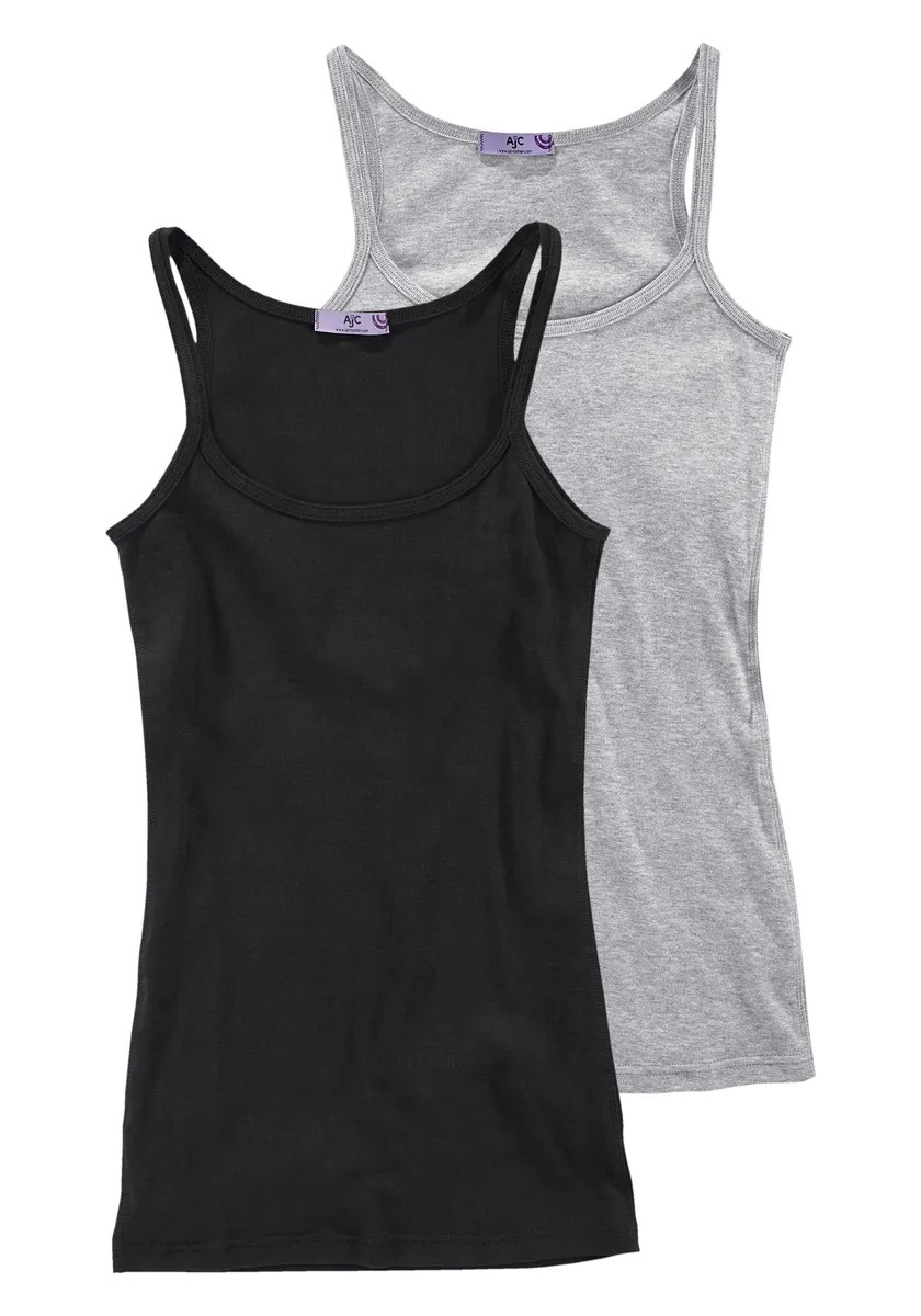 Отличный комбинированный женский длинный топ от AJC. Прикрывающий бедра и облегающий фигуру крой. Круглый вырез горловины имеет окантовку. Верх удобен в ношении благодаря мягкому хлопку. Доступен в упаковке по 2 шт.