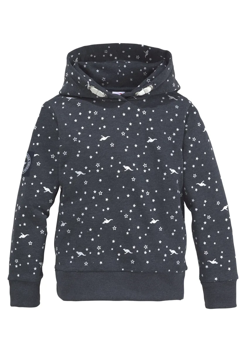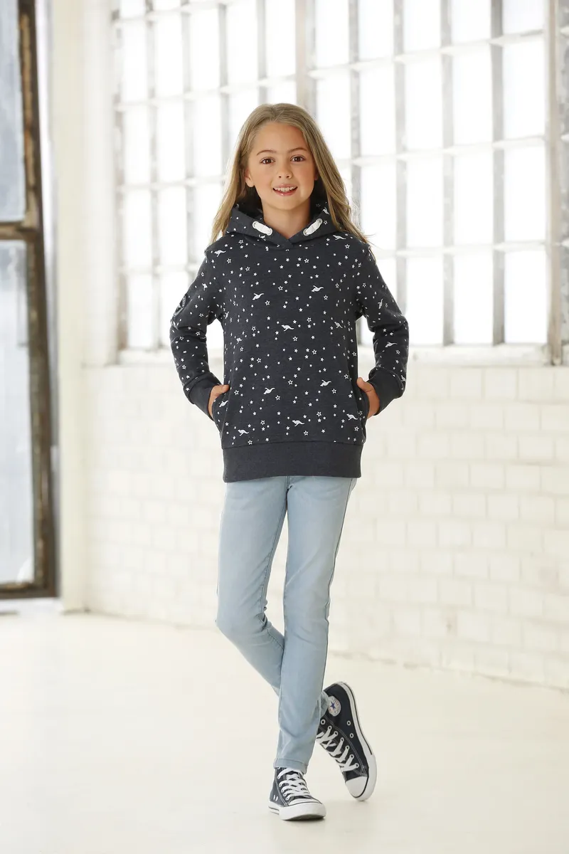 Модная толстовка с капюшоном от KangaROOS. Длина до бедра и нормальная ширина. Рукава длинные. Верх мягкий и приятный к коже благодаря внутренней части из начесной ткани.