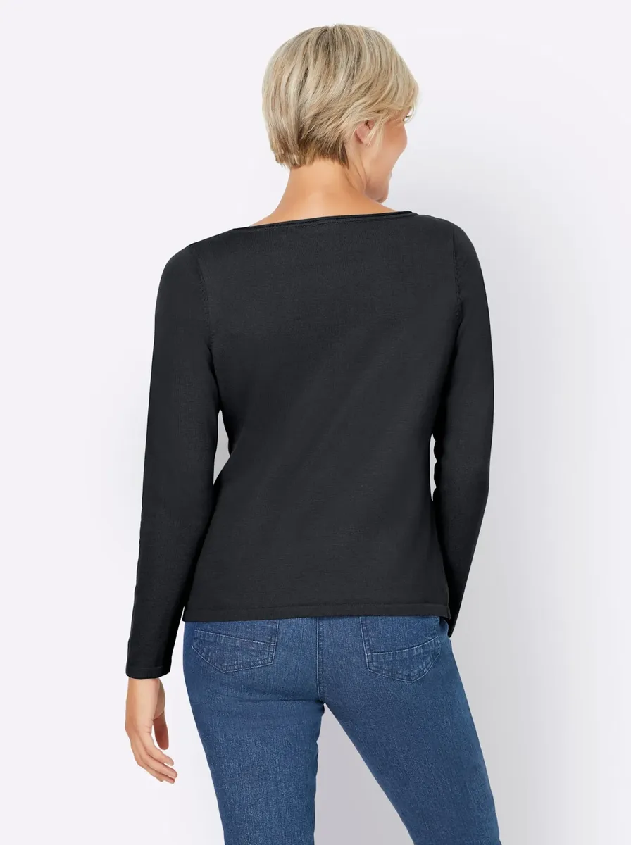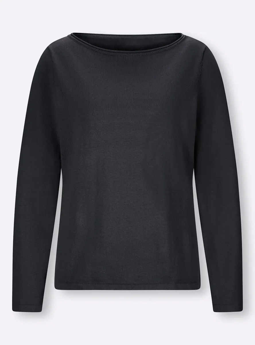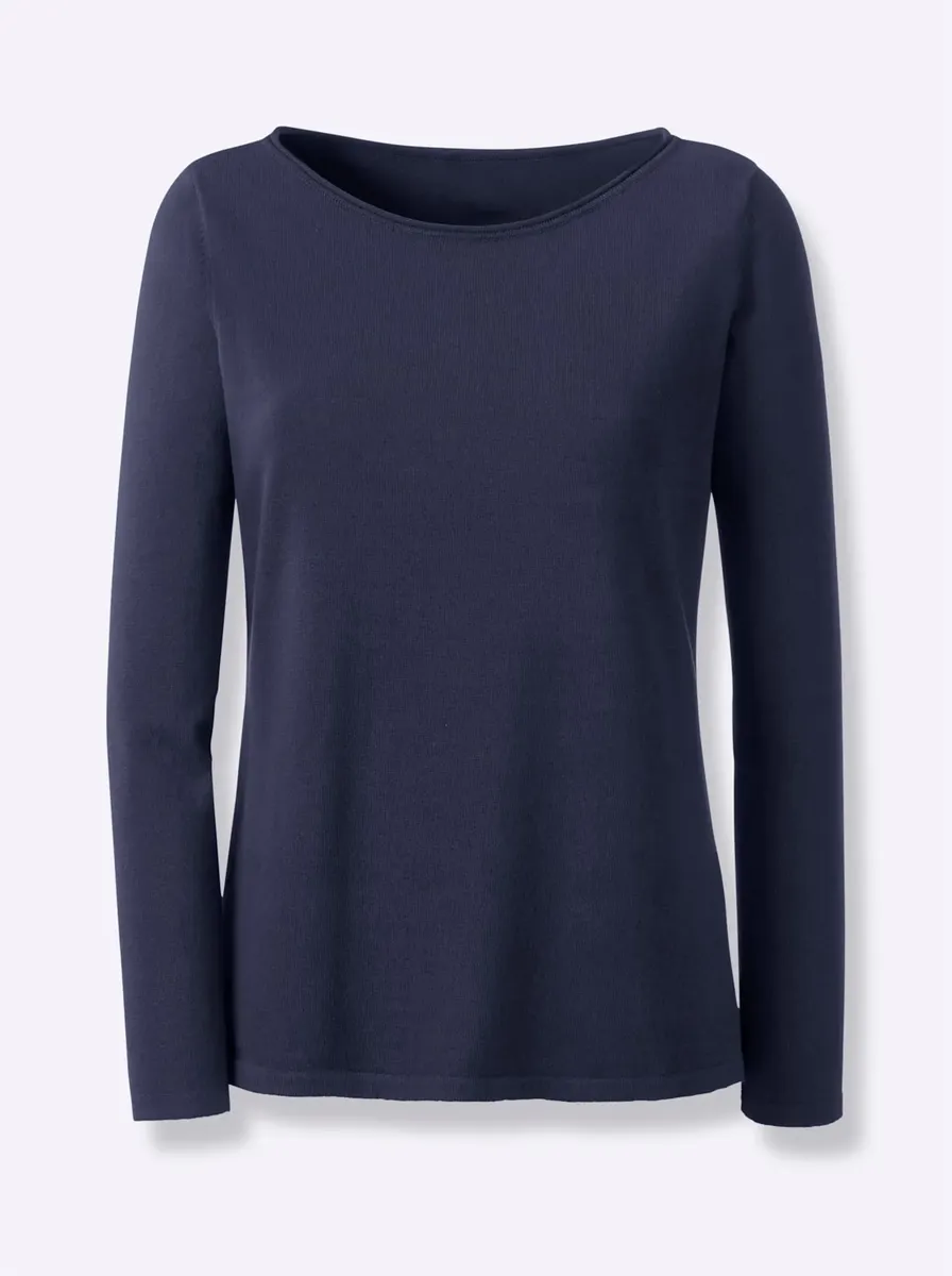 Пуловер из качественного хлопка можно комбинировать разными способами, его очень удобно носить. Легкий вырез «лодочка» с трубчатым и закругленным краем. Длинные рукава, манжеты с закатанными краями. Поддержите инициативу «Хлопок, сделанный в Африке». 100% хлопок. Машинная стирка.