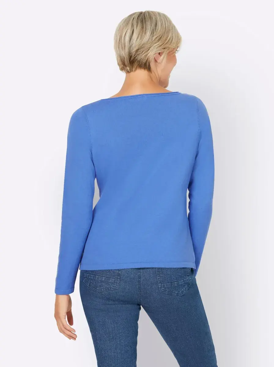 Пуловер из качественного хлопка можно комбинировать разными способами, его очень удобно носить. Легкий вырез «лодочка» с трубчатым и закругленным краем. Длинные рукава, манжеты с закатанными краями. Поддержите инициативу «Хлопок, сделанный в Африке». 100% хлопок. Машинная стирка.