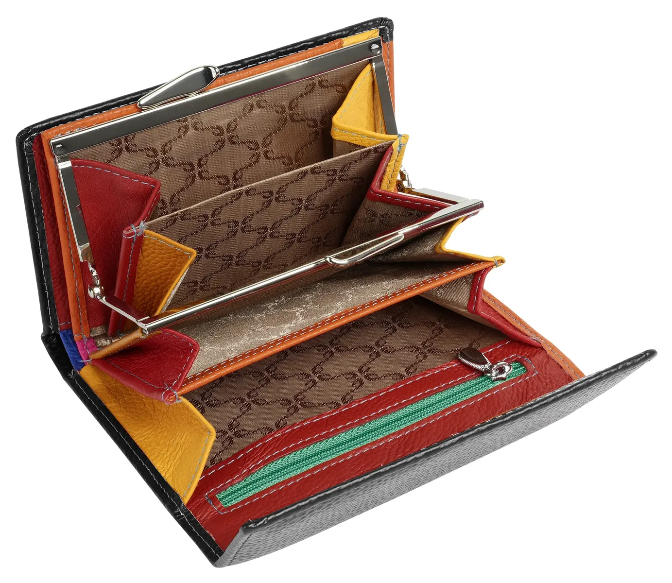 Модно, современно и немного безумно: кожаный кошелек Samantha Look! Изюминкой этого кошелька является отделение для монет с застежкой-клипсой. Он также имеет слоты для карт, отделение для монет и смотровое отделение. Также нет недостатка в других вариантах вставки. С этим кошельком вы можете привнести цвет в свою повседневную жизнь!* 100% воловья кожа* 1 отделение для монет с застежкой-клипсой* 1 отделение для купюр* 4 отделения для карт* 2 накладных кармана* 1 отделение на молнии* 1 видимое отделение* застежка на кнопкуОсобенности: натуральный материал кожаДополнение к названию: натуральная кожаШирина: 10 смВес: 200Высота: 14 смГлубина: 3 смКоличество внутренних карманов: 3Количество отделений для карточек: 4Количество отделений для купюр: 1Количество видимых отделений: 1Внешний материал: 100% коровья кожаРазмер: один размерОсновная застежка: на кнопкиЦвет салона : разноцветныйМатериал салона: кожаВид интерьера: контрастный цветВес: 0,2 кгОтделение для монет: есть (застегивается на ремешок)Оптика Поверхность: однотонная - шелковистая блестящаяОбъем: 0,1Формат: Альбомный формат
