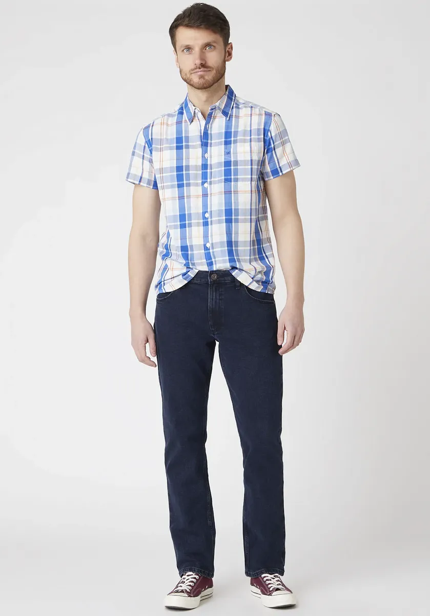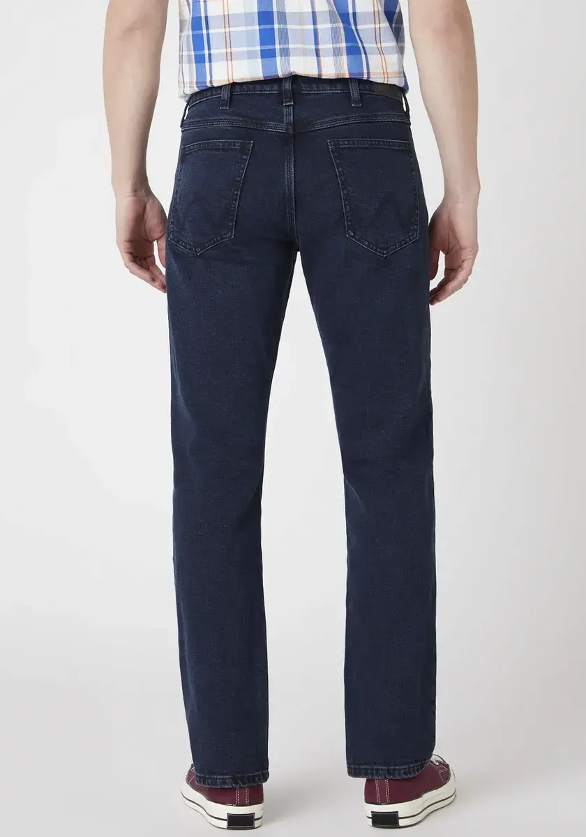 Незамысловатые мужские джинсы прямого кроя от бренда Wrangler. Можно комбинировать различными способами для проведения досуга. Джинсы с содержанием хлопка долговечны и просты в уходе.
