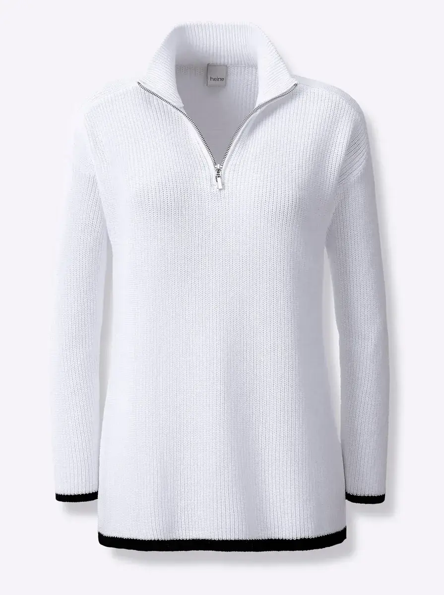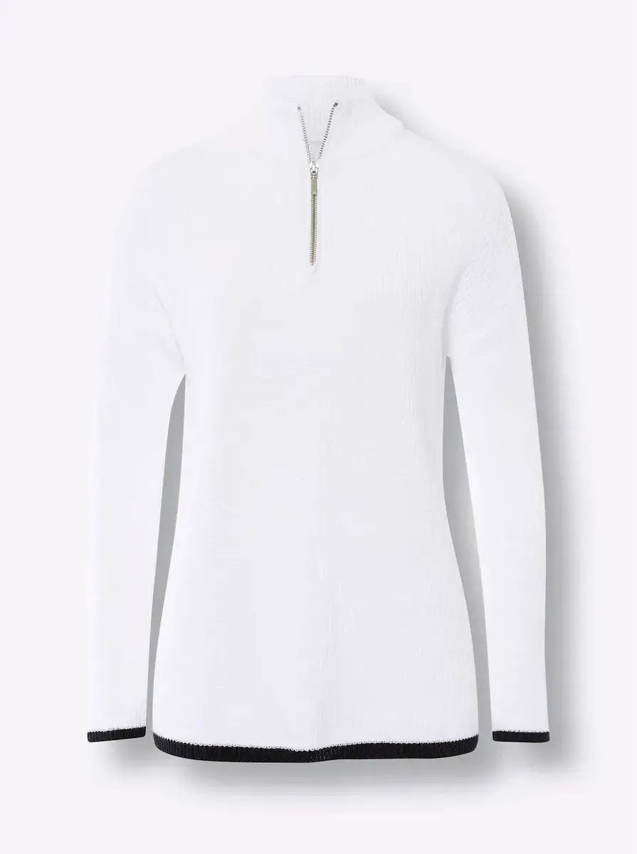 Пуловер из мягкой рубчатой ​​вязки со спортивным воротником Тройер и модной контрастной окантовкой. Модель прямого кроя с длинными рукавами. Поддержите инициативу «Хлопок, сделанный в Африке». 100% хлопок. Машинная стирка.