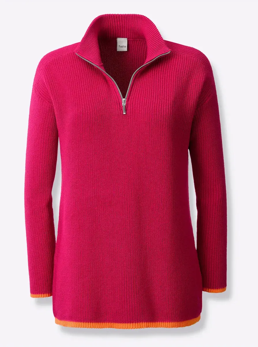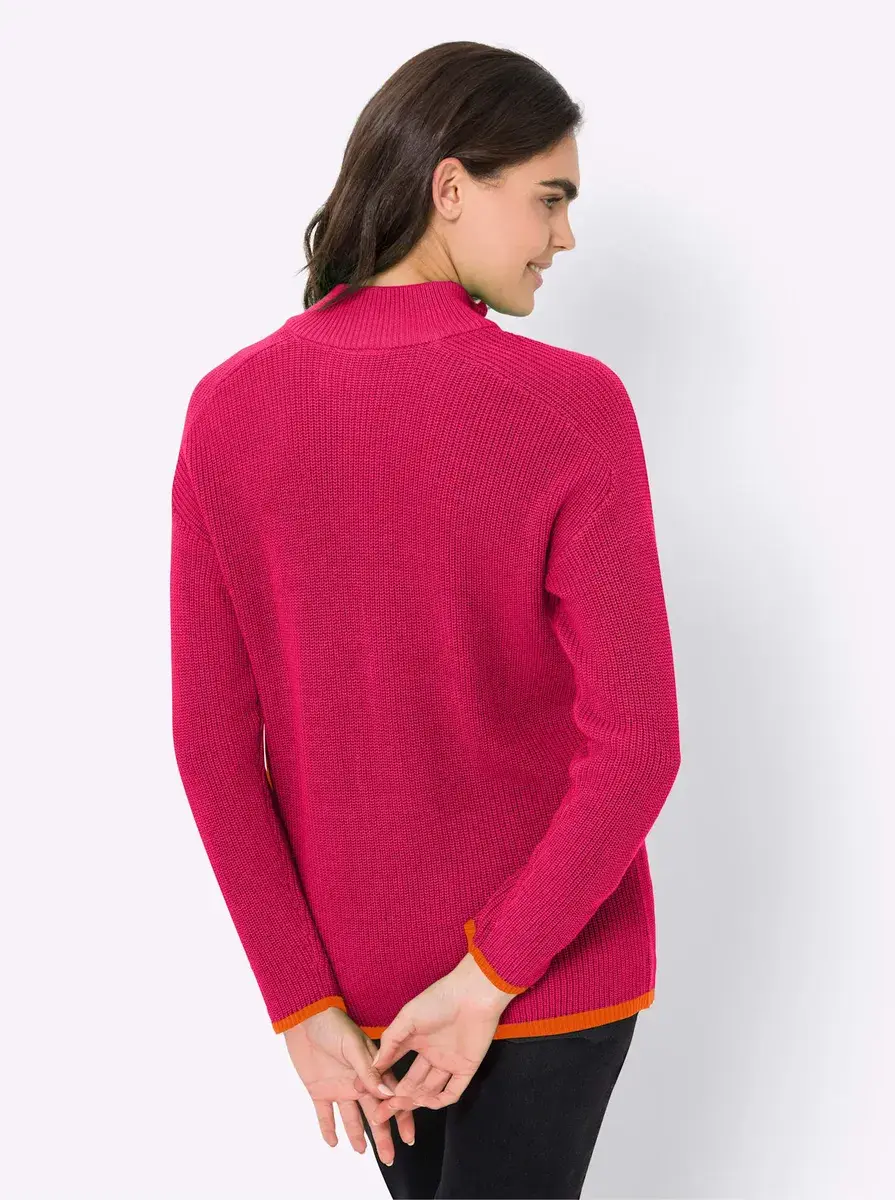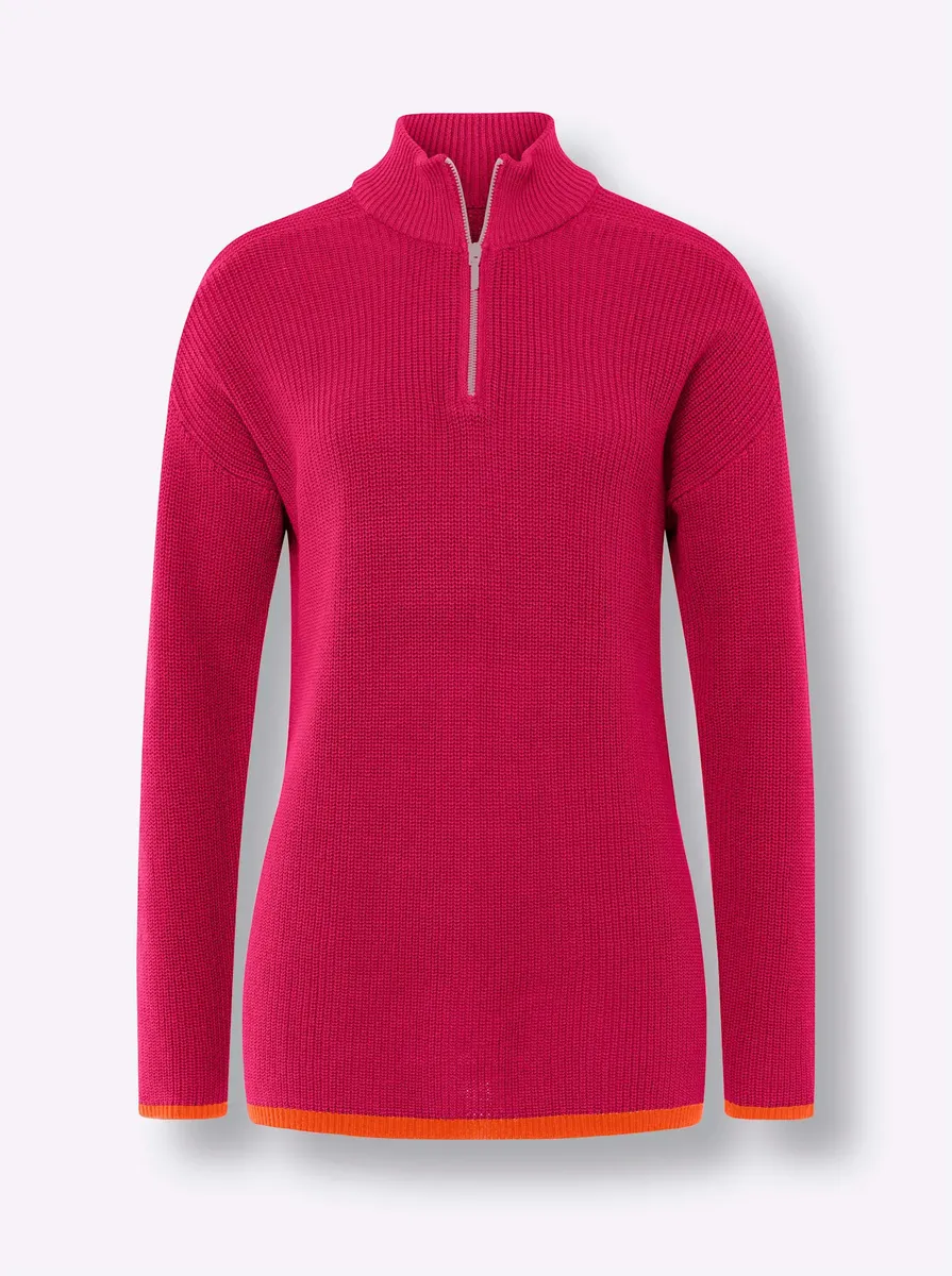 Пуловер из мягкой рубчатой ​​вязки со спортивным воротником Тройер и модной контрастной окантовкой. Модель прямого кроя с длинными рукавами. Поддержите инициативу «Хлопок, сделанный в Африке». 100% хлопок. Машинная стирка.