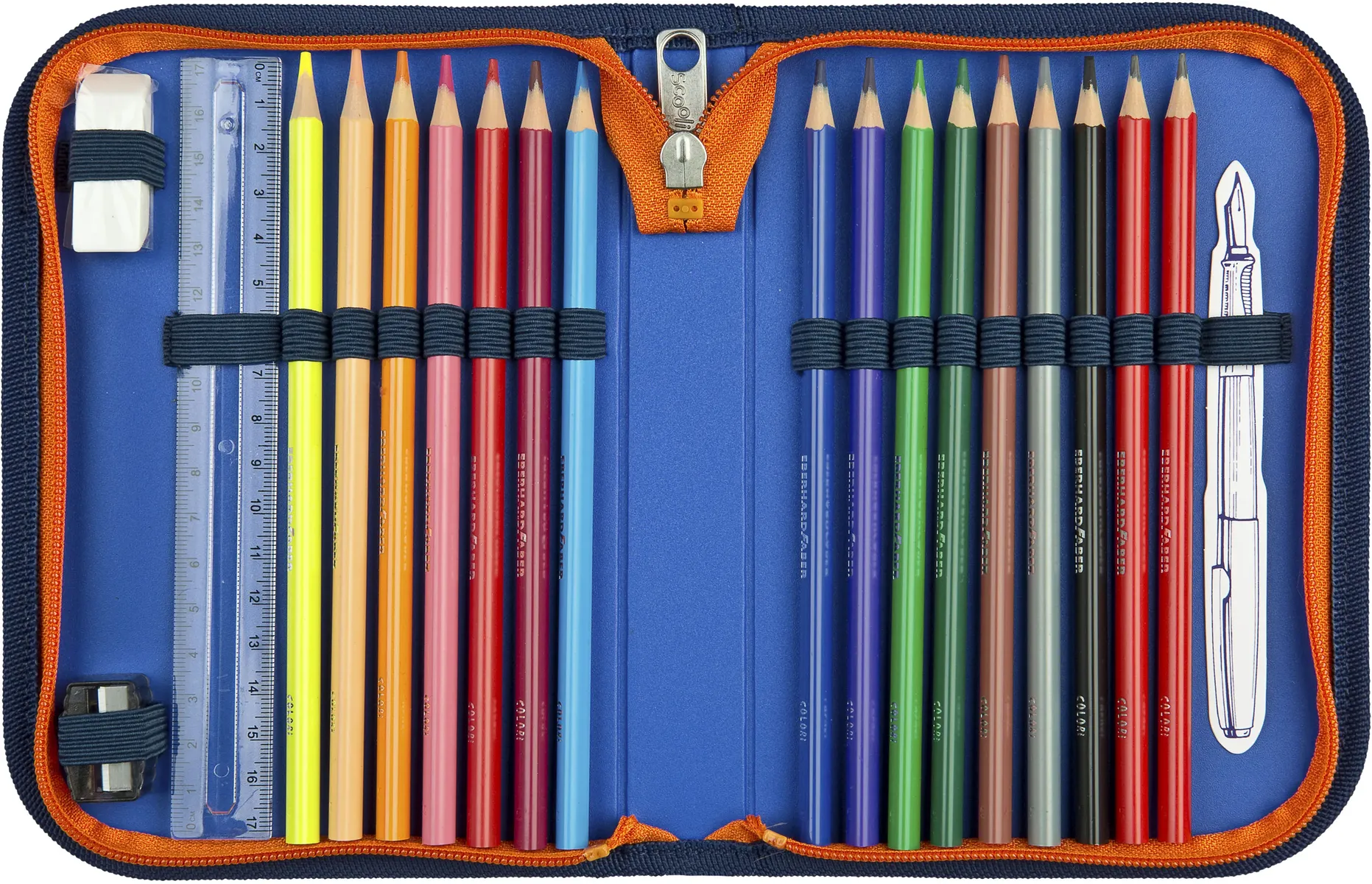 Наполненный студенческий футляр высококачественными цветными карандашами Eberhard-Faber.