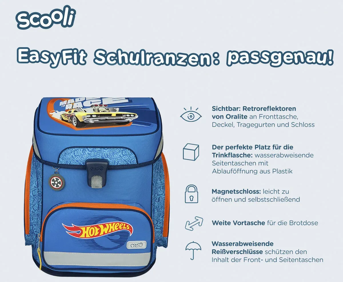Школьная сумка Scooli "EasyFit, Hot Wheels", светоотражатели, цвет Hot Wheels