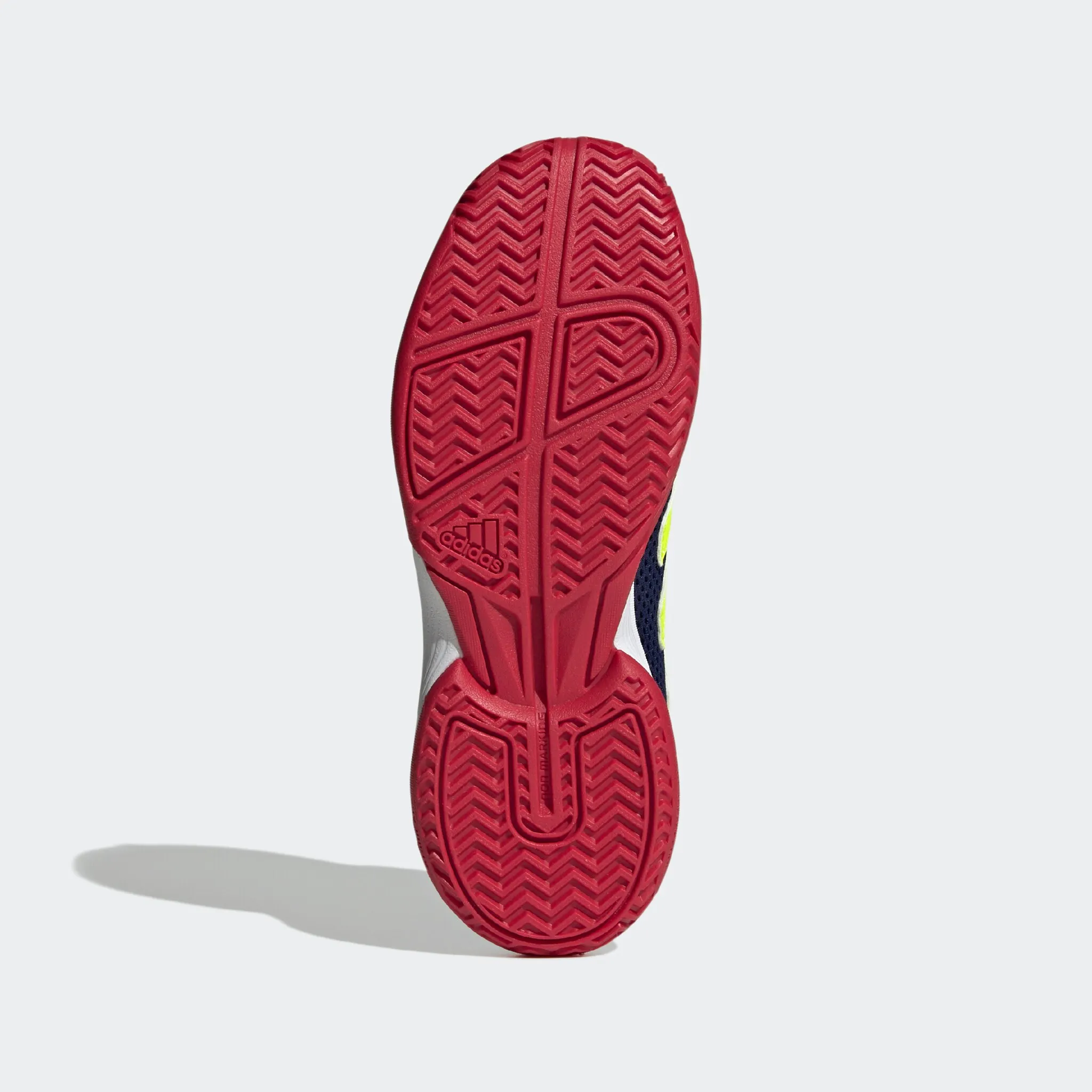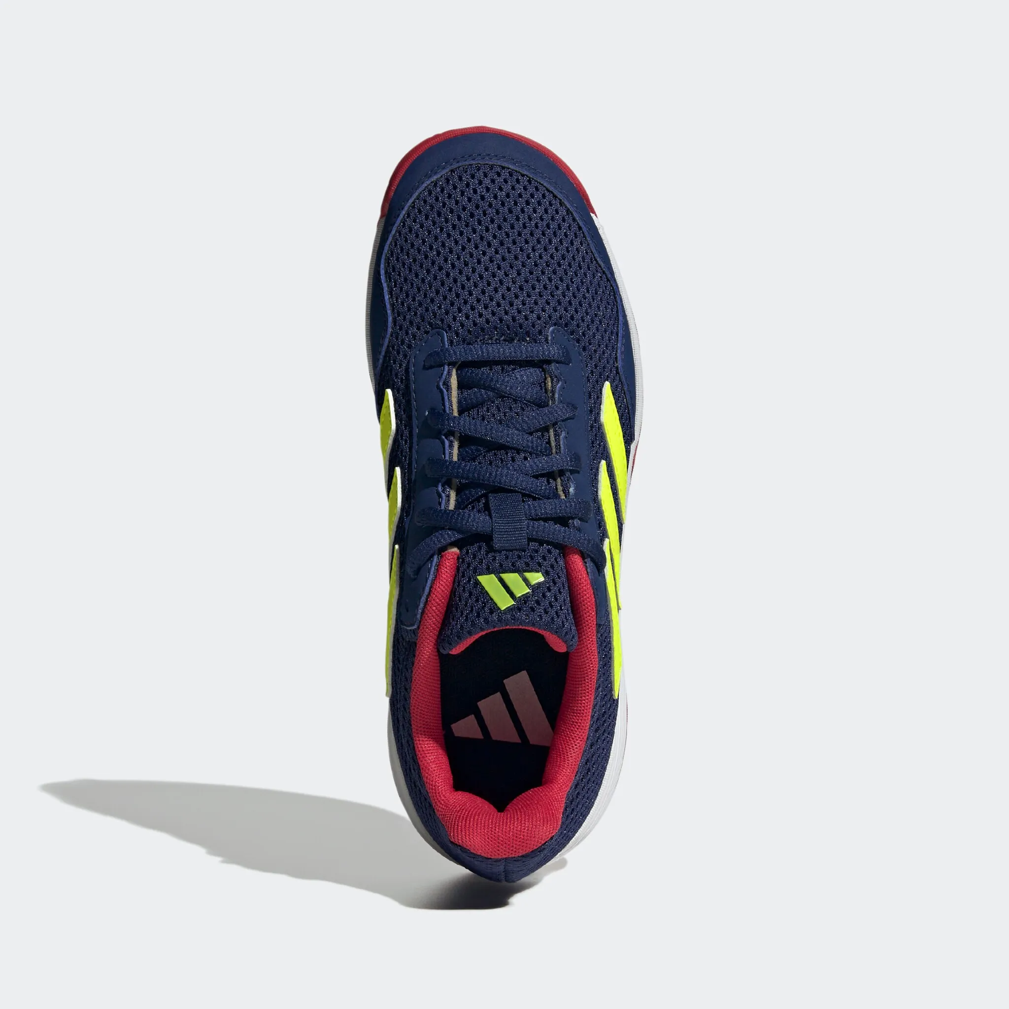 Созданные для комфорта, эти детские теннисные кроссовки Adidas идеально подходят для начинающих звезд тенниса. Верх из дышащей сетки обеспечивает оптимальную циркуляцию воздуха, а резиновая подошва гарантирует надежное сцепление при быстрых остановках и поворотах. Будь то во время тренировки или матча, мягкая подкладка балует растущие ноги. В этой детской обуви ваш малыш сможет провести каждую минуту на корте с пользой. Этот продукт изготовлен как минимум на 20% из переработанных материалов. Повторное использование существующих материалов помогает нам сократить количество отходов, ограничить нашу зависимость от невозобновляемых ресурсов и уменьшить выбросы углекислого газа в атмосферу от нашей продукции.
