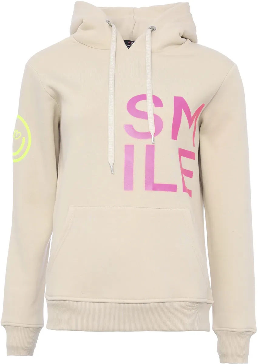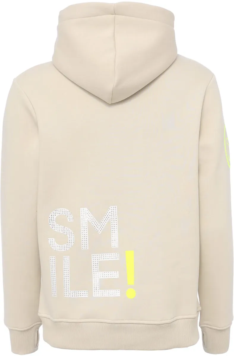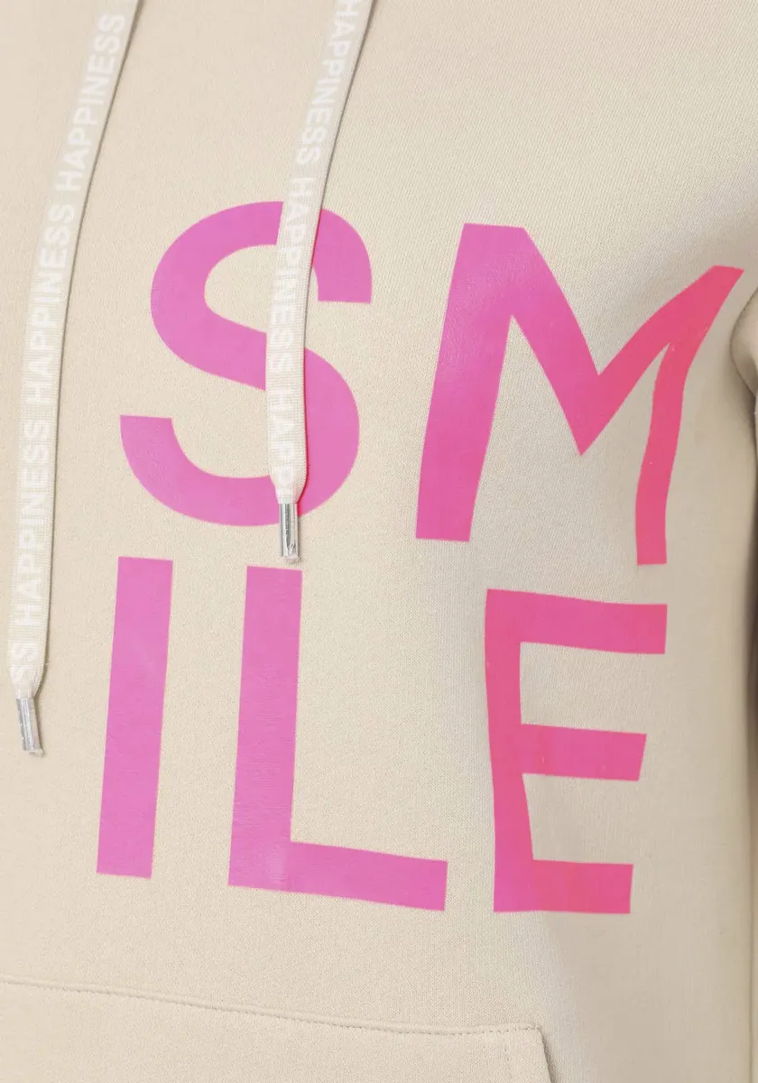 Модное женское худи от Zwillingsherz с надписью. С обычным широким вырезом. Толстовка также имеет практичный капюшон на кулиске. Имеет очаровательную ленту для галстука. Верх из мягкой и эластичной ткани обеспечивает свободу движений.