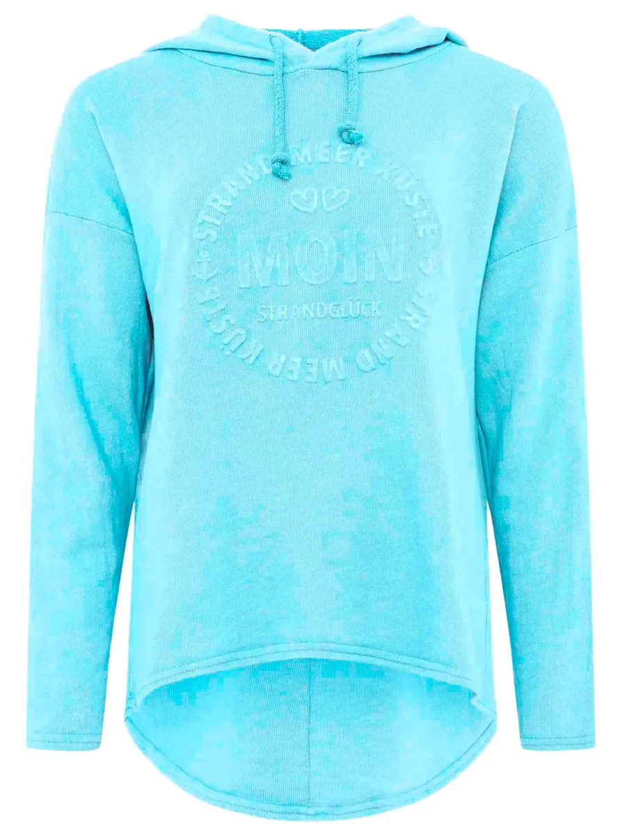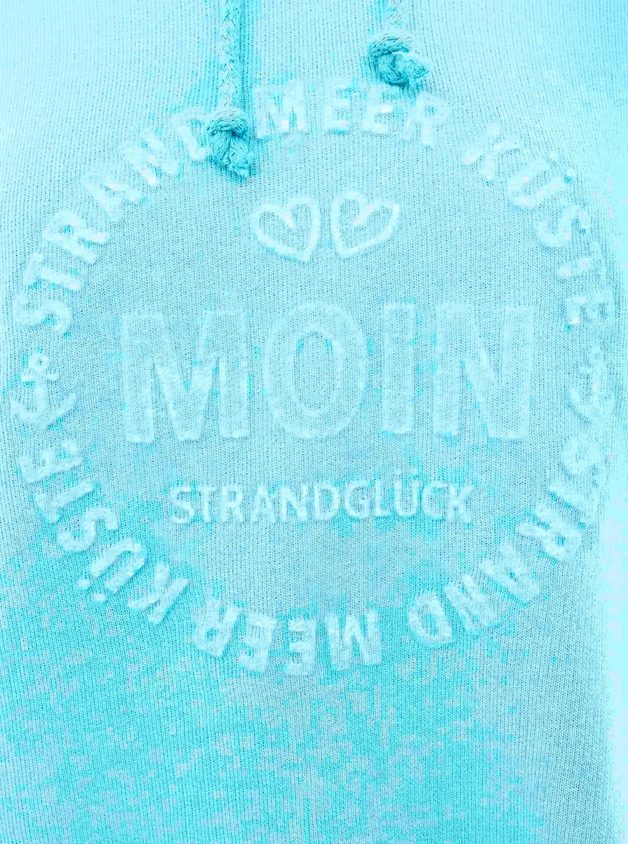 Толстовка Zwillingsherz ""Moin"", с капюшоном, принт спереди, бирюзовый