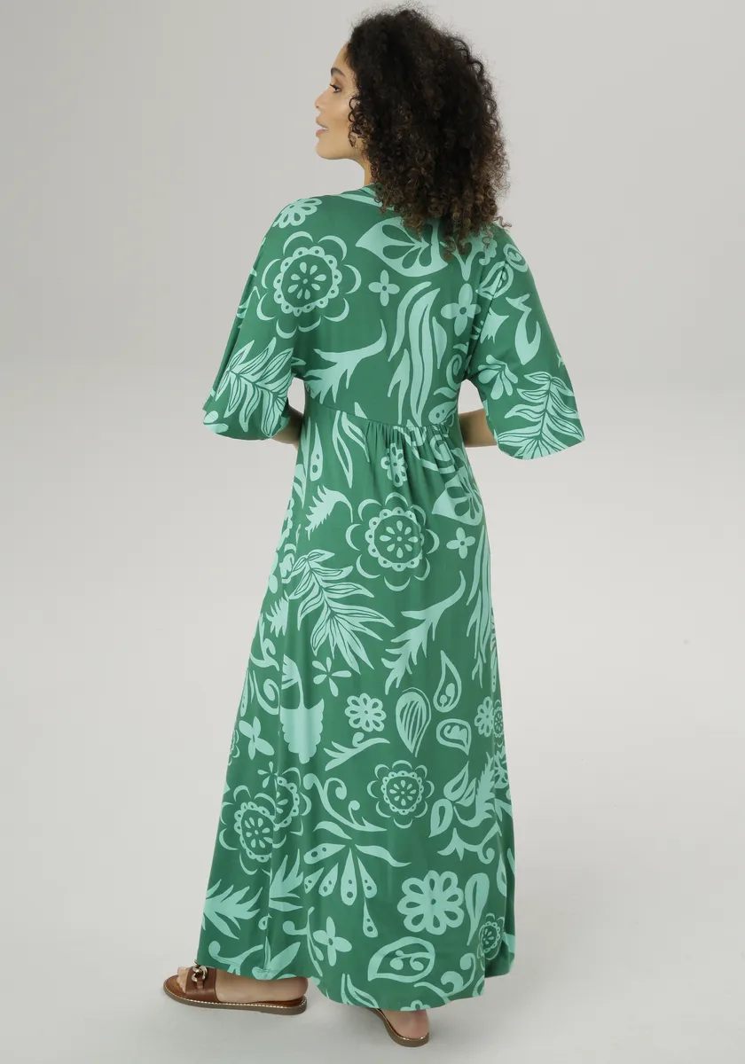 Платье макси Aniston SELECTED с широкими рукавами длиной 3/4, зеленый