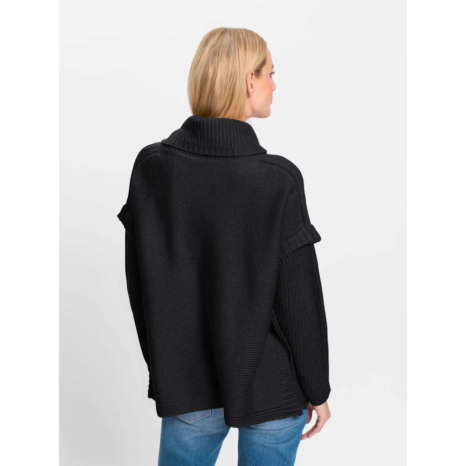 Пуловер Необыкновенное зрелище: экстравагантное пончо повседневной ширины с водолазкой, заниженной линией плеч и разрезами по бокам. Длинный рукав. 75% полиакрил, 15% шерсть, 10% полиамид. Машинная стирка.
