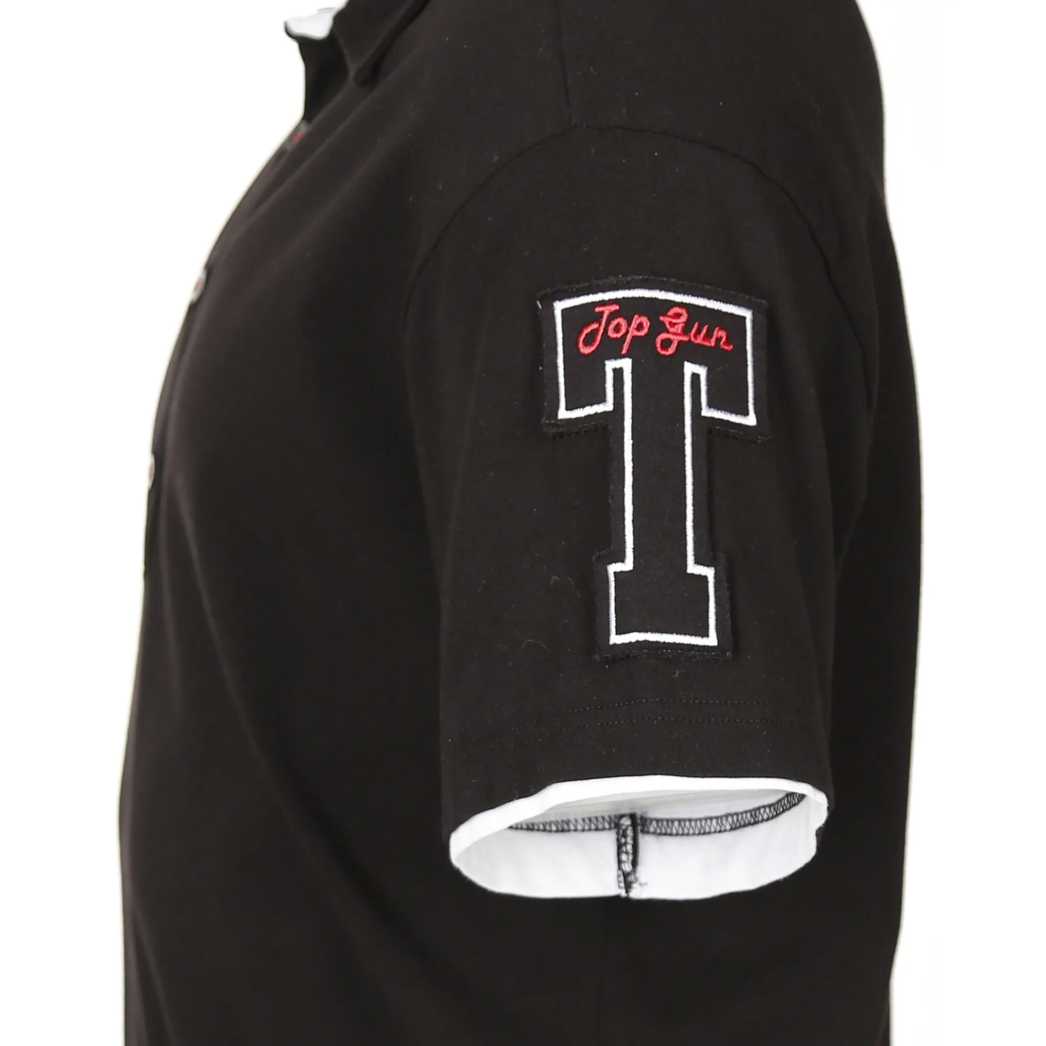 Модное мужское поло от бренда Top Gun. Поло имеет удобный рубашечный воротник. Спортивный крой делает его очень удобным в ношении. Он имеет типичную вышивку на обоих рукавах и надпись Top Gun на левой эмблеме.