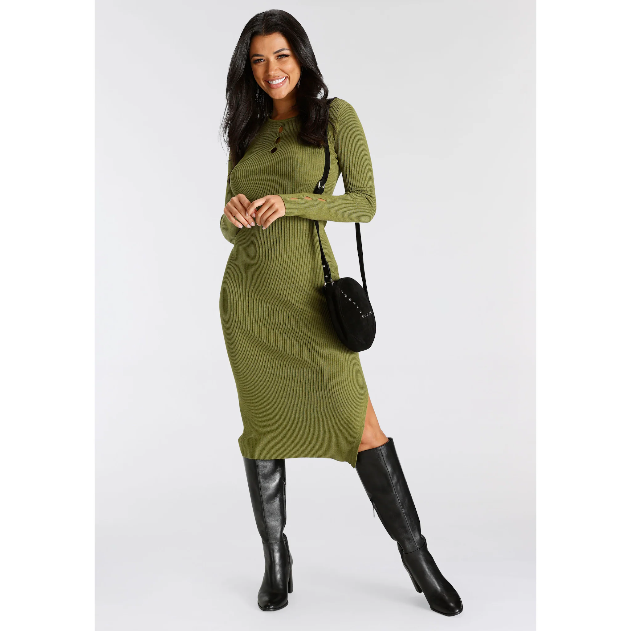 Шикарно или удобно? В этом платье миди от Melrose модные женщины смогут сочетать и то, и другое в одном! Боковой разрез обеспечивает еще большую свободу движений. Оно имеет узкий крой и заканчивается ниже колен. Благодаря качественному эластичному трикотажу платье легко в движении и комфортно.