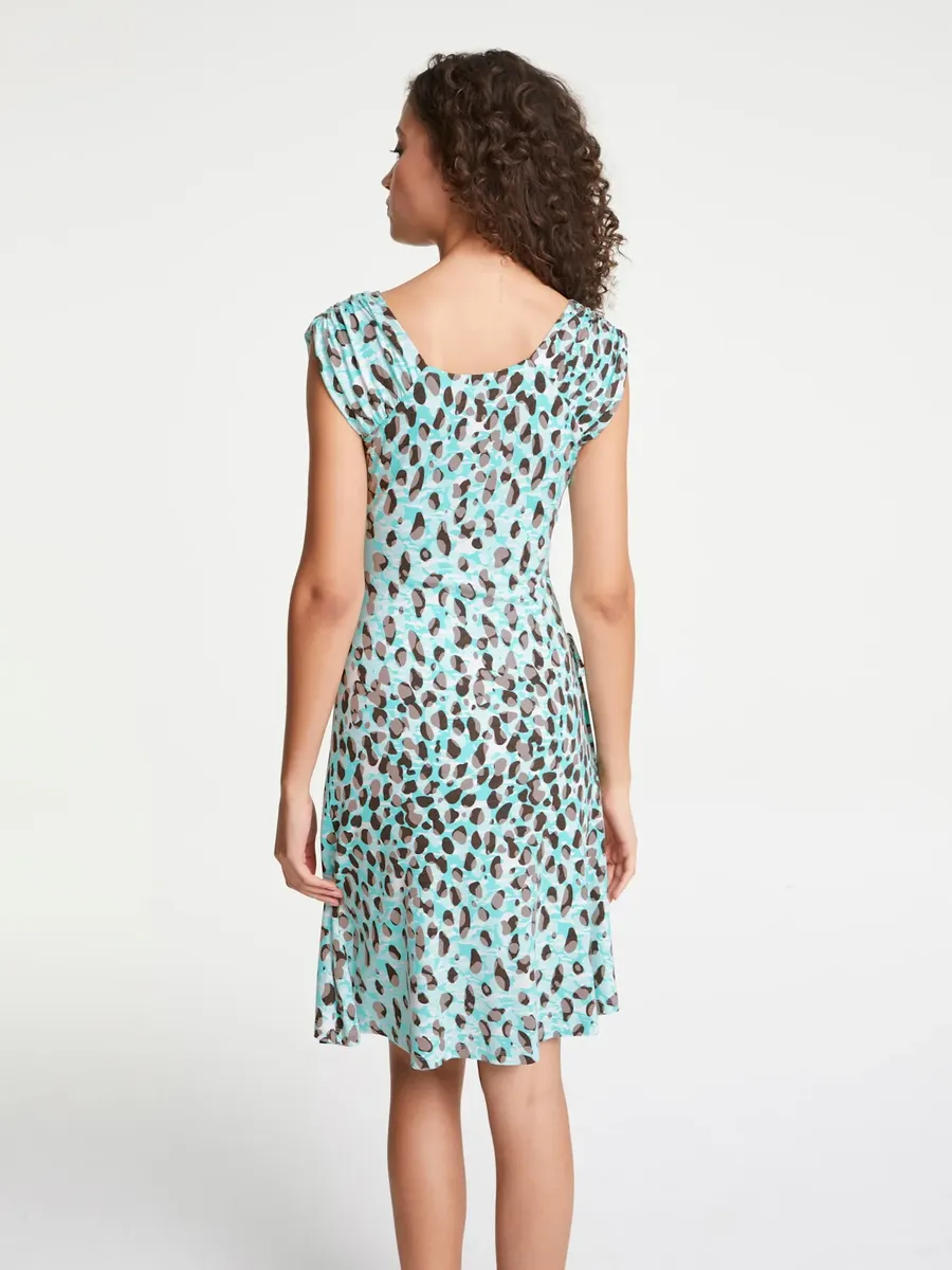 Модное платье-рубашка с запахом. Идеальная посадка благодаря эластану. Подкладка, моделирующая фигуру. Подходит для отдыха и повседневного использования. 95% вискоза, 5% эластан. Сетчатая подкладка: 83% полиамид, 17% эластан. Машинная стирка.
