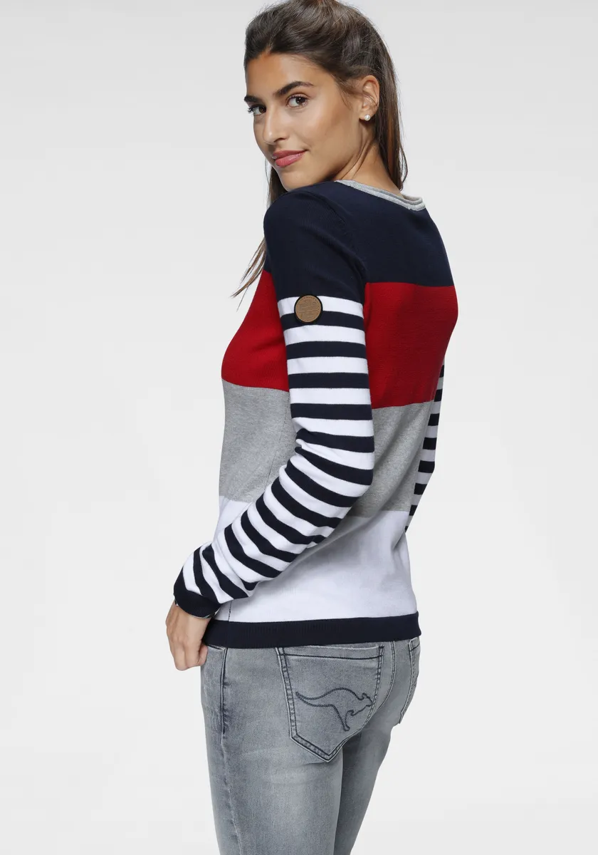 Свитер KangaROOS с круглым вырезом в модном полосатом исполнении, красный