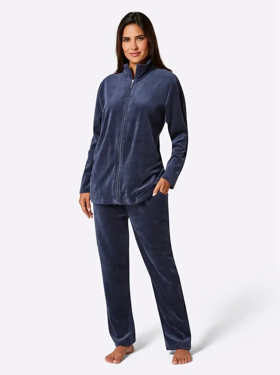 Пушистый спортивный костюм Nicki для отдыха. С отложным воротником и молнией во всю длину. 2 кармана сверху и на брюках. Эластичный пояс по всему периметру. 80% хлопок, 20% полиэстер. Машинная стирка.