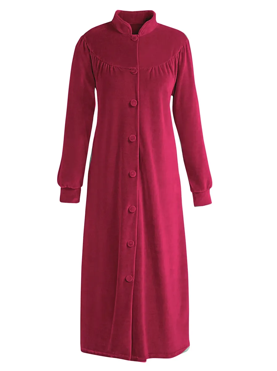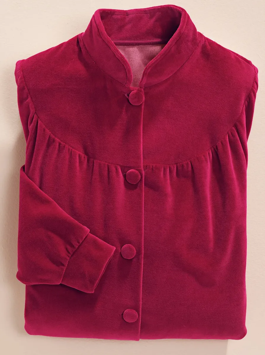 Пышный, мягкий халат Nicki с воротником стойкой и круглой кокеткой. Непрерывная планка с пуговицами. 2 кармана. Рукава с манжетами. 80% хлопок, 20% полиэстер.