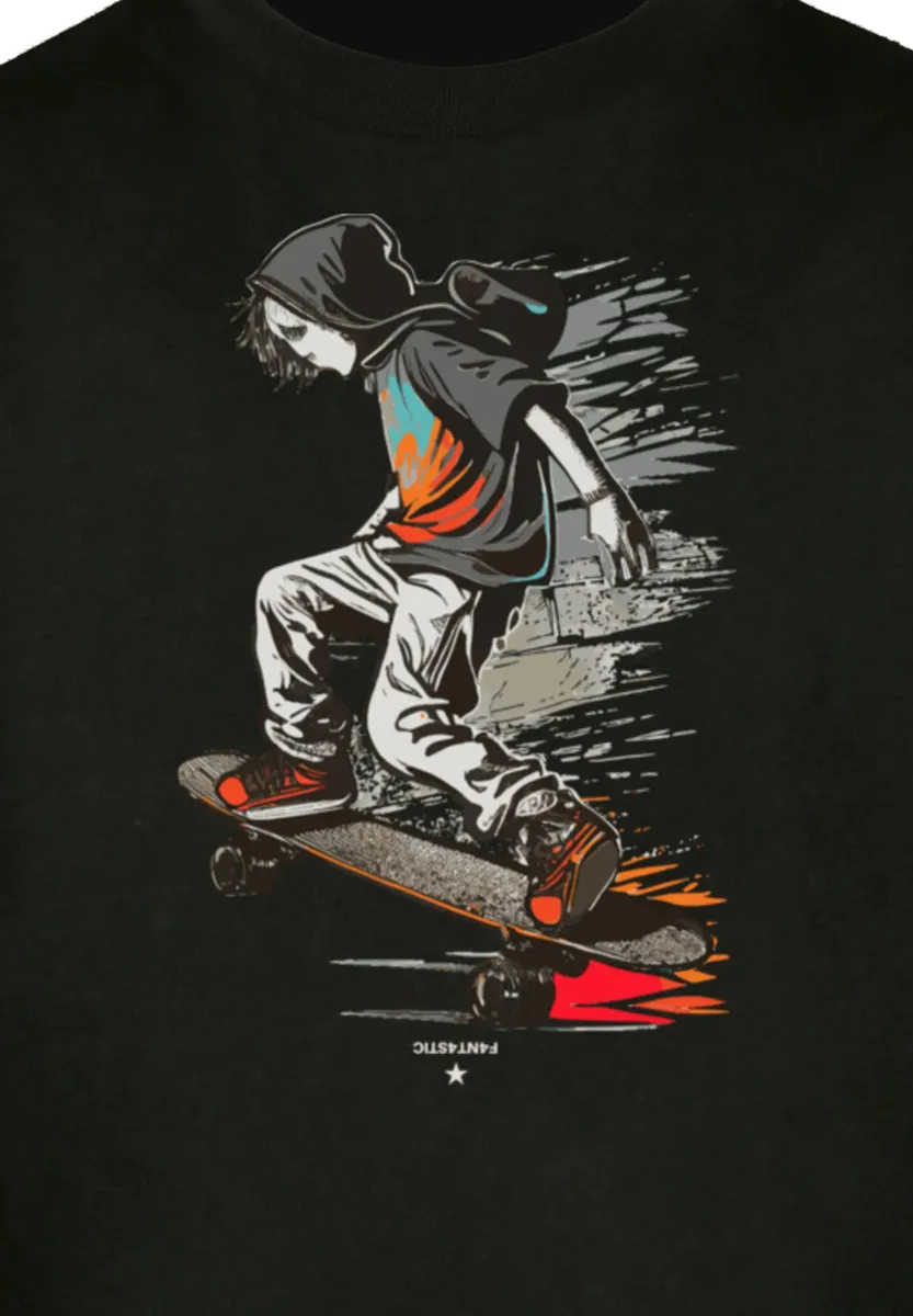 F4NT4STIC Футболка "Скейтбордист", принт, черный
