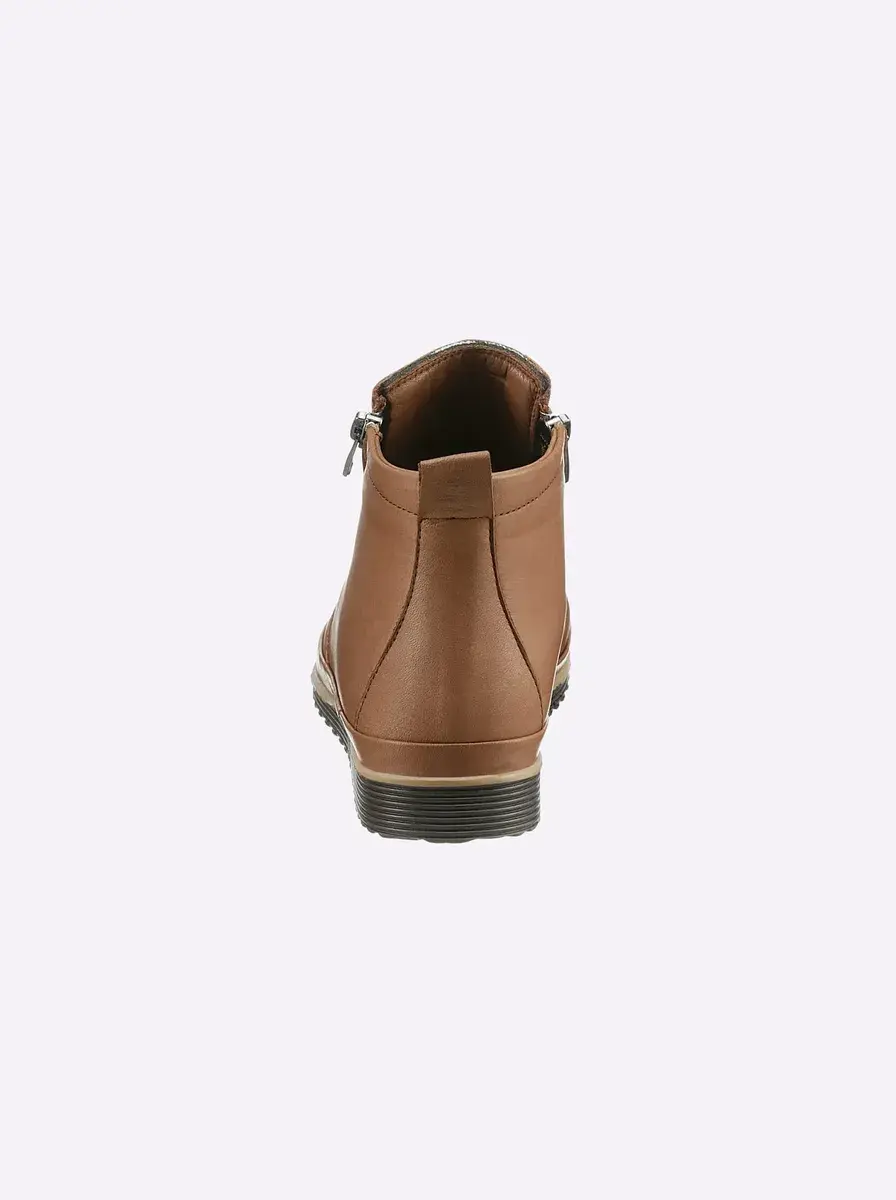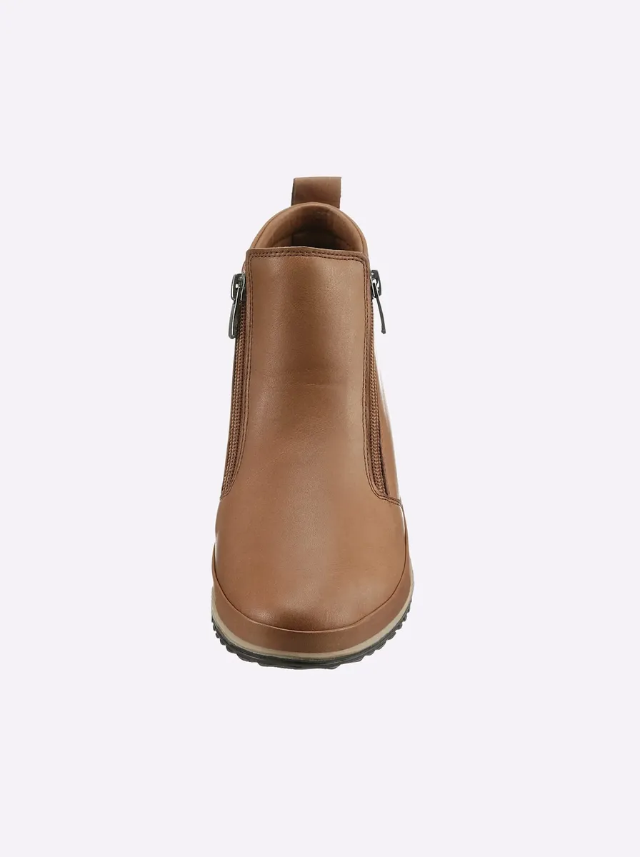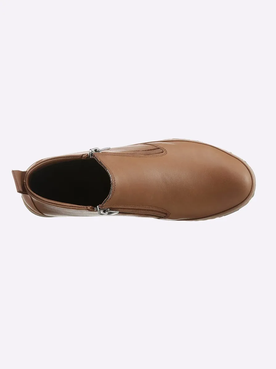 Модные спортивные короткие ботильоны из высококачественной воловьей кожи наппа. С молнией и съемной стелькой. Текстильная подкладка. Кожаная стелька. Высота голенища около 10 см, окружность около 26 см. Высота каблука около 20 мм.
