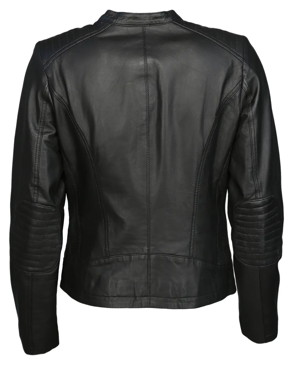 Стильная кожаная куртка от модного бренда JCC. Кожаная куртка из мягкой овчины обеспечивает приятный комфорт благодаря двум боковым карманам и нагрудному карману. Изюминкой слегка скроенного жакета является искусно декорированная внутренняя подкладка. Воротник-стойка и симметричный крой завершают общую концепцию современной стильной куртки. Вырез: нетОсобенности: нетОтбеливание: Не отбеливатьПроизводитель: JCCCКоллекция: Весна/Лето 14Форма воротника: круглый вырезСостав материала: Внешний материал 100% кожа ягненка. / Подкладка: 100% полиэстерДлина: обычнаяМатериал подкладки: ПолиэстерМатериал Подкладка (двойная снимается): синтетическое волокно Материал внешней ткани: гладкая кожа Примечания к материалу: нет/не актуально Рисунок: однотонный Покрой: индивидуальный Рекомендации по уходу: специальная чистка кожи Тип/стиль изделия: байкер Тип изделия: кожаная куртка. Длина по спинке: около 52 см по размеру. 36Сезон: весна-летоПодол: прямой Тип застежки: молнияНабивка: нет/не актуальноЦелевая группа: женщиныДлина рукава: длинный рукавФильм рукава: нет/не актуально