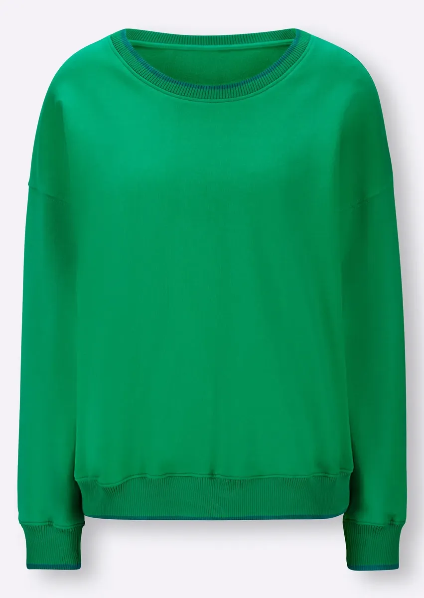 Модный верх свитшота: манжеты в рубчик контрастного цвета. Спортивный стиль с небрежным вырезом на плечах, длинными рукавами и круглым вырезом. Мягкое качество. Поддержите инициативу «Хлопок, сделанный в Африке». 100% хлопок. Машинная стирка.