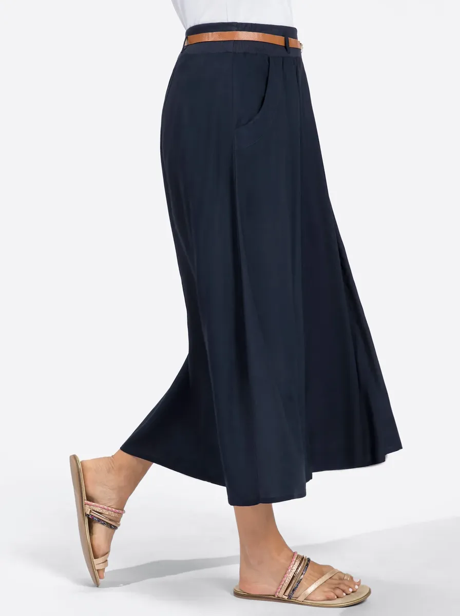 Модный вид, струящаяся драпировка, удобство в ношении - юбка-слип с ребристым поясом, резинкой в ​​верхней части и 2 шлевками для ремня. Соответствующий ремень входит в комплект поставки. С 2 практичными карманами. Цвет экрю имеет подкладку для защиты от нежелательных взглядов. 100% вискоза. Подкладка: 100% полиэстер. Машинная стирка.