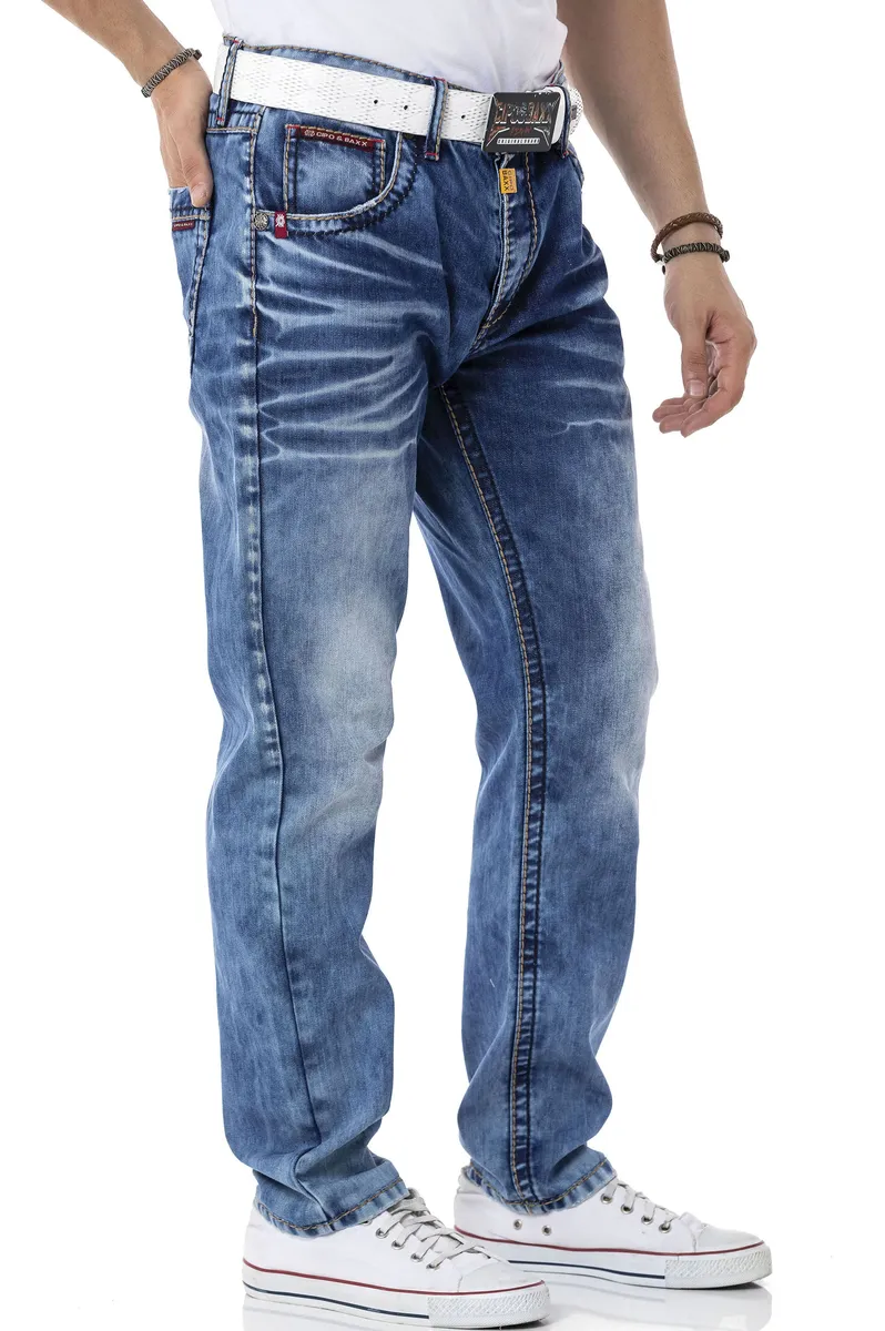Несложные женские джинсы прямого кроя от Cipo & Baxx. Можно комбинировать для создания повседневных образов для отдыха. Брюки просты в уходе и долговечны благодаря прочной джинсовой ткани.