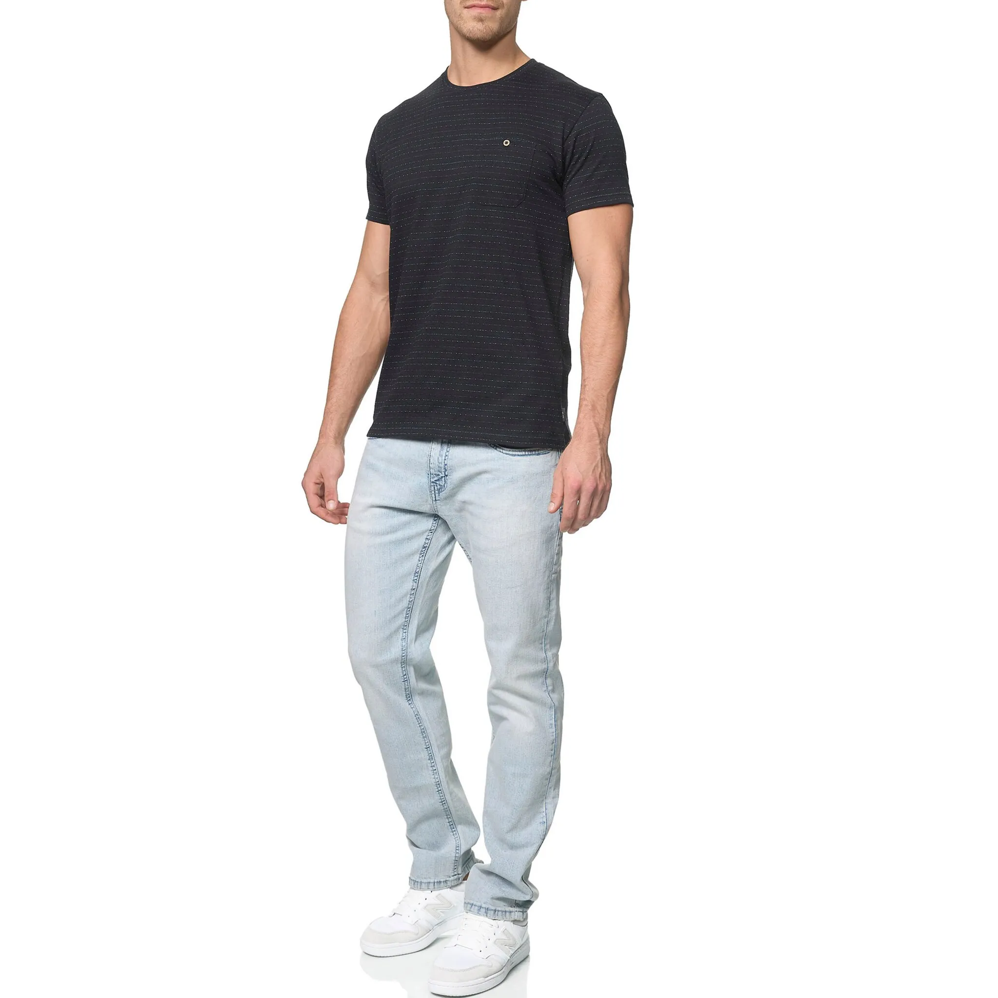 Несложные мужские джинсы прямого кроя от Indicode. Можно комбинировать разными способами для проведения досуга. За брюками очень легко ухаживать благодаря прочному и прочному джинсовому материалу.