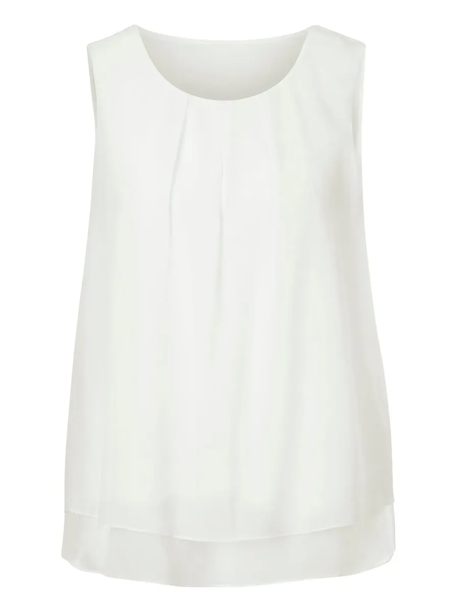 Очаровательный верх блузки: два слоя уменьшают прозрачность, но не привлекательность. Складка спереди на круглом вырезе. Ароматный креп-жоржет высокого качества. 100% полиэстер. Машинная стирка.