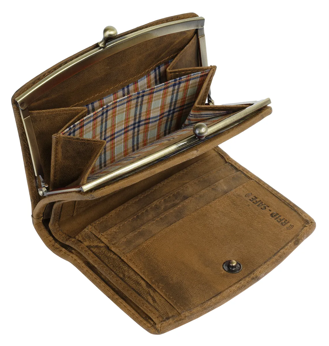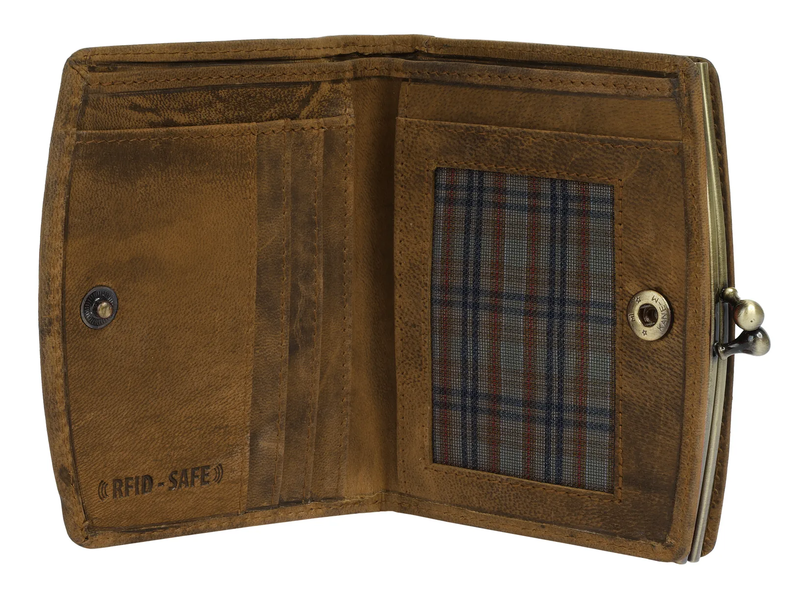 Очаровательный кожаный кошелек в винтажном стиле вас порадует! Первое, на что обращаешь внимание, — это классическая застежка-клипса, которая не только надежно удерживает отделение для монет, но и добавляет модный акцент. В основном отделении кошелька имеется несколько карманов и отделений для карт, а также смотровой карман и отделение для купюр. Защита RFID предотвращает несанкционированное считывание данных вашей личной карты.* 100% воловья кожа* Застежка-кнопка* 1 отделение для монет с застежкой-клипсой* 2 отделения для купюр* 3 отделения для карт* 3 накладных кармана* 1 видимый карман* Незаметное тиснение логотипа спереди* RFID защита от несанкционированного использования данных посредством сканированияОсобенности: натуральная кожаДобавление названия: натуральная кожаШирина: 12 смВес: 150Высота: 9 смГлубина: 2 смКоличество внутренних карманов: 3Количество отделений для карт: 3Количество отделений для купюр: 2Количество видимых карманов: 1Внешний материал: 100% воловья кожаРазмер : один размерОсновная застежка: кнопкаВнутренний материал: смесь материаловВнутренний вид: с рисункомВес: 0,15 кгОтделение для монет: есть (застегивается на ремешок)Оптика Поверхность: винтажОбъем: 0,1Формат: альбомный формат