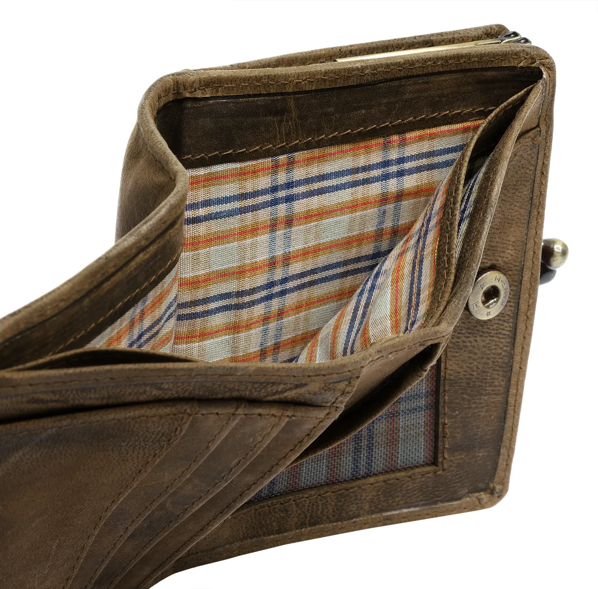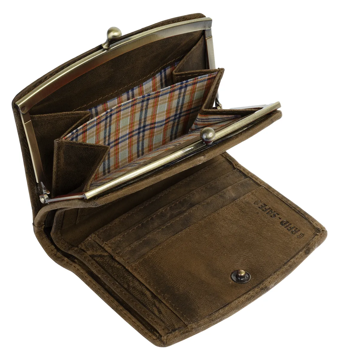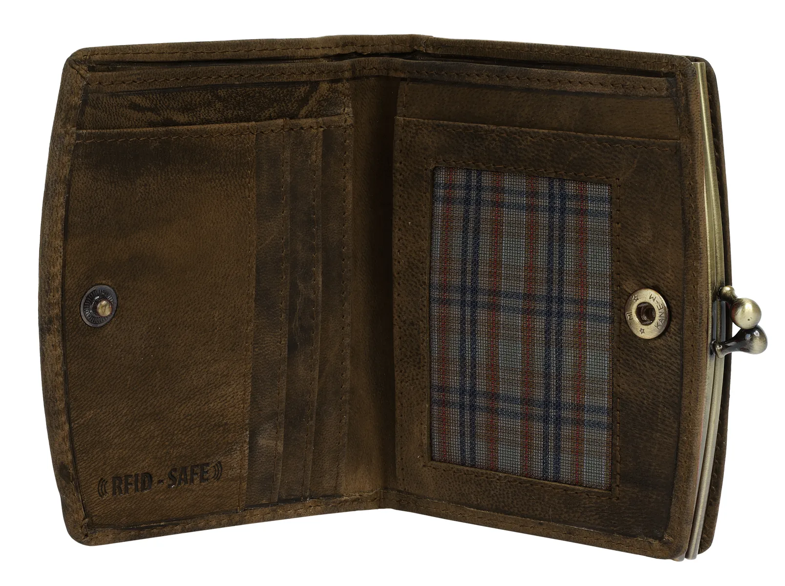 Очаровательный кожаный кошелек в винтажном стиле вас порадует! Первое, на что обращаешь внимание, — это классическая застежка-клипса, которая не только надежно удерживает отделение для монет, но и добавляет модный акцент. В основном отделении кошелька имеется несколько карманов и отделений для карт, а также смотровой карман и отделение для купюр. Защита RFID предотвращает несанкционированное считывание данных вашей личной карты.* 100% воловья кожа* Застежка-кнопка* 1 отделение для монет с застежкой-клипсой* 2 отделения для купюр* 3 отделения для карт* 3 накладных кармана* 1 видимый карман* Незаметное тиснение логотипа спереди* RFID защита от несанкционированного использования данных посредством сканированияОсобенности: натуральная кожаДобавление названия: натуральная кожаШирина: 12 смВес: 150Высота: 9 смГлубина: 2 смКоличество внутренних карманов: 3Количество отделений для карт: 3Количество отделений для купюр: 2Количество видимых карманов: 1Внешний материал: 100% воловья кожаРазмер : один размерОсновная застежка: кнопкаВнутренний материал: смесь материаловВнутренний вид: с рисункомВес: 0,15 кгОтделение для монет: есть (застегивается на ремешок)Оптика Поверхность: винтажОбъем: 0,1Формат: альбомный формат