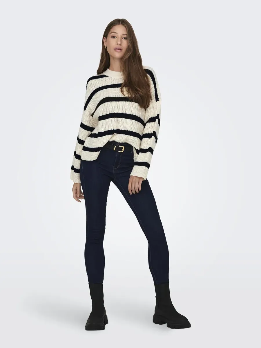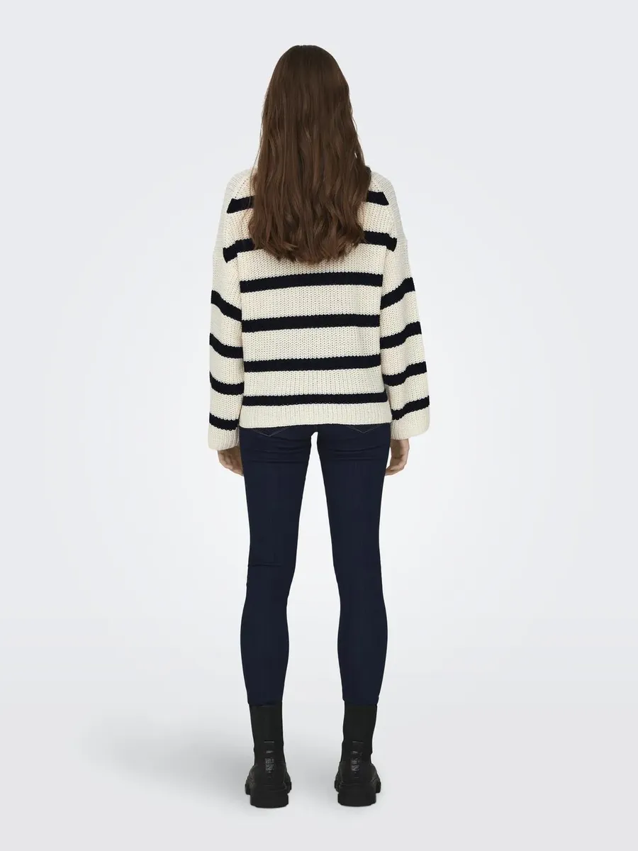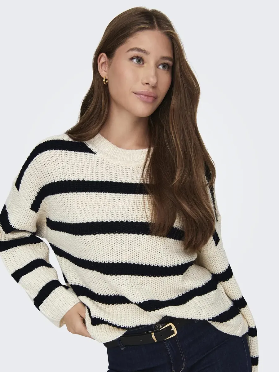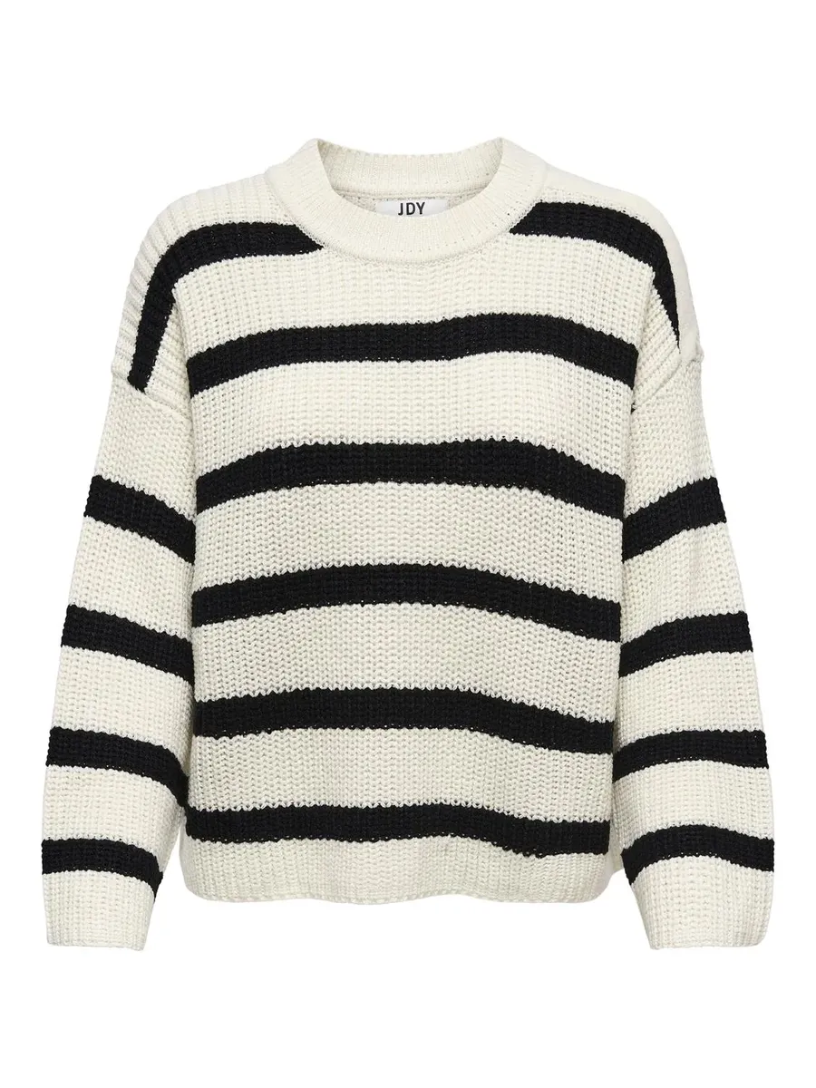 Вязаный свитер JDY "JDYJUSTY L/S STRIPE PULLOVER KNT NOOS", цвет Eggnog Stripes:Black