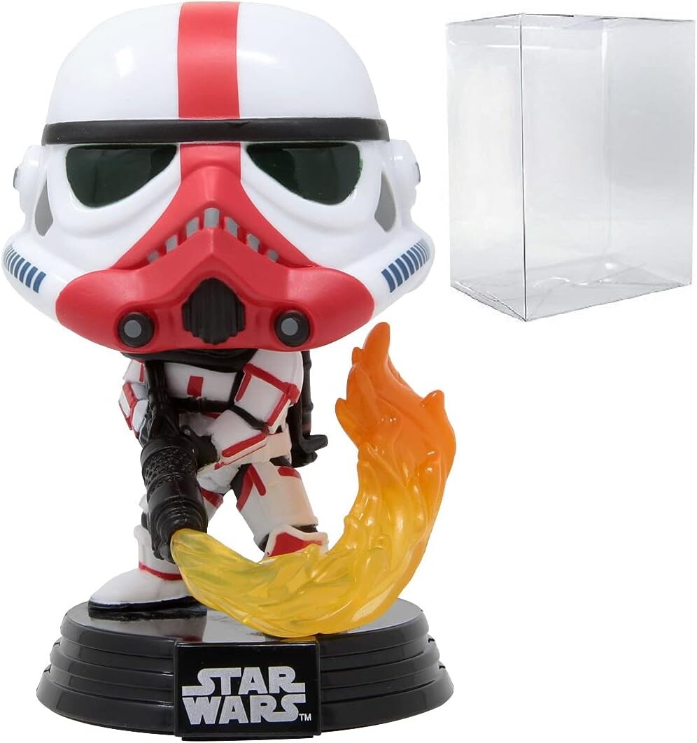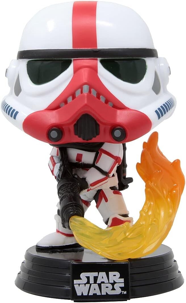 Виниловая фигурка в виде штурмовика-сжигателя из “Звездных войн”. Штурмовик-сжигатель — разновидность штурмовиков, существовавших после краха Галактической Империи. Такие штурмовики были вооружены огнемётами. Имперский осколок моффа Гидеона использовал штурмовиков-сжигателей.
