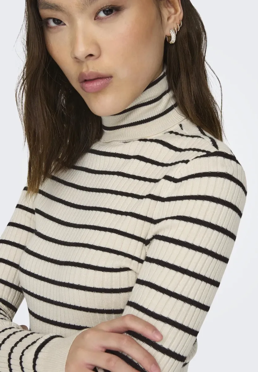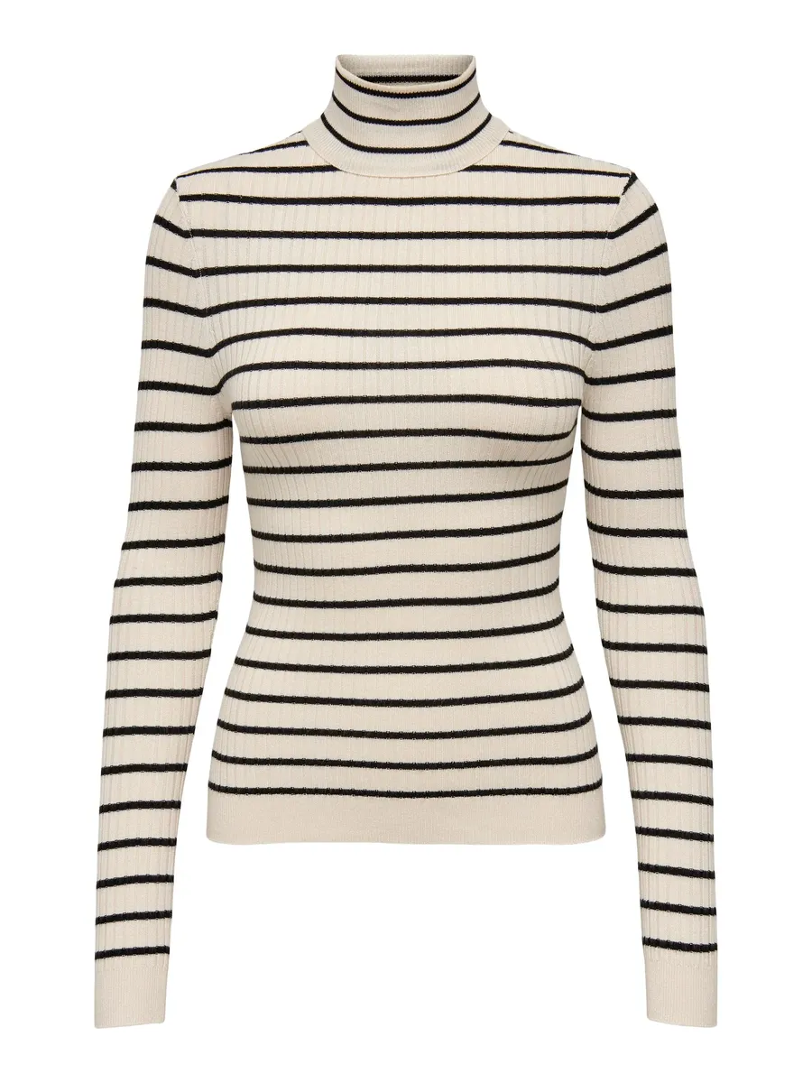 Only водолазка "ONLKAROL L/S ROLLNECK PULLOVER KNT NOOS", цвет Whitecap Gray Stripes:Black Small Stripes