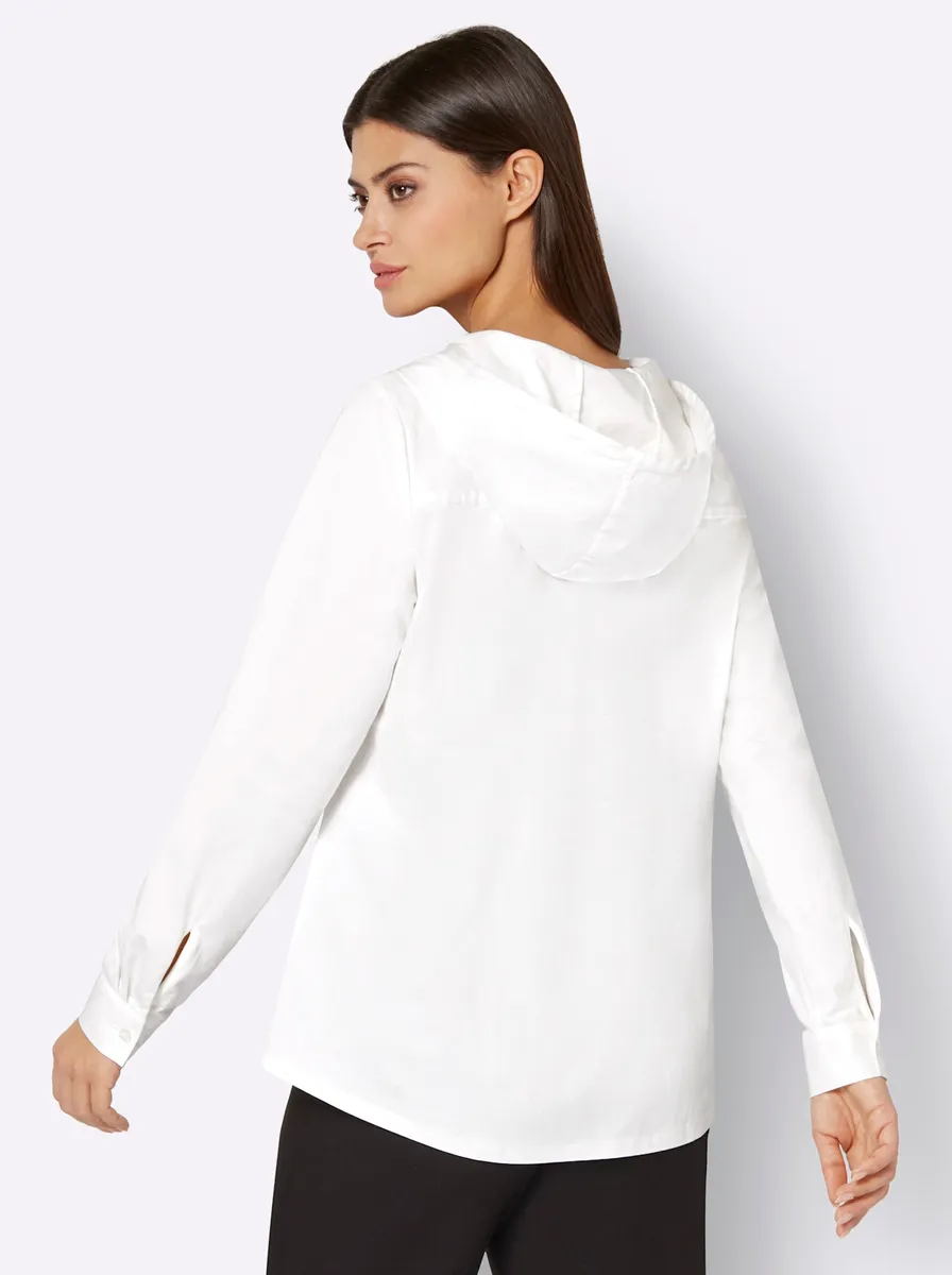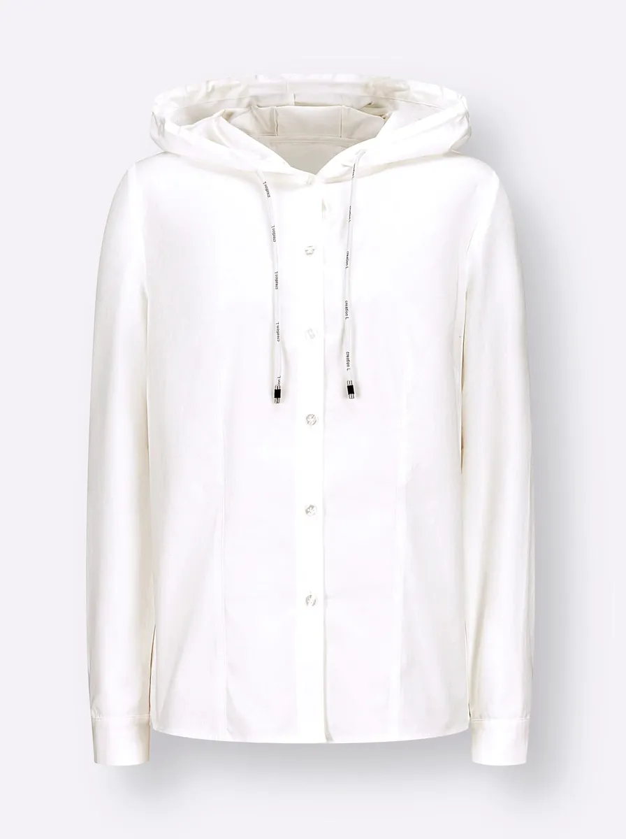 Очень повседневно и в то же время очень модно: эластичная, удобная блузка с капюшоном и завязками. Детали: планка на пуговицах во всю длину, длинные рукава с разрезными манжетами, слегка закругленный низ, удлиненный сзади. Он прекрасно ниспадает благодаря складке сзади. Поддержите инициативу «Хлопок, сделанный в Африке». 97% хлопок, 3% эластан. Отделка: 95% хлопок, 5% эластан. Машинная стирка.