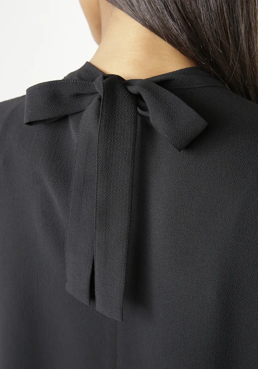 Небольшой воротник-стойка с разрезом и завязкой сзади.