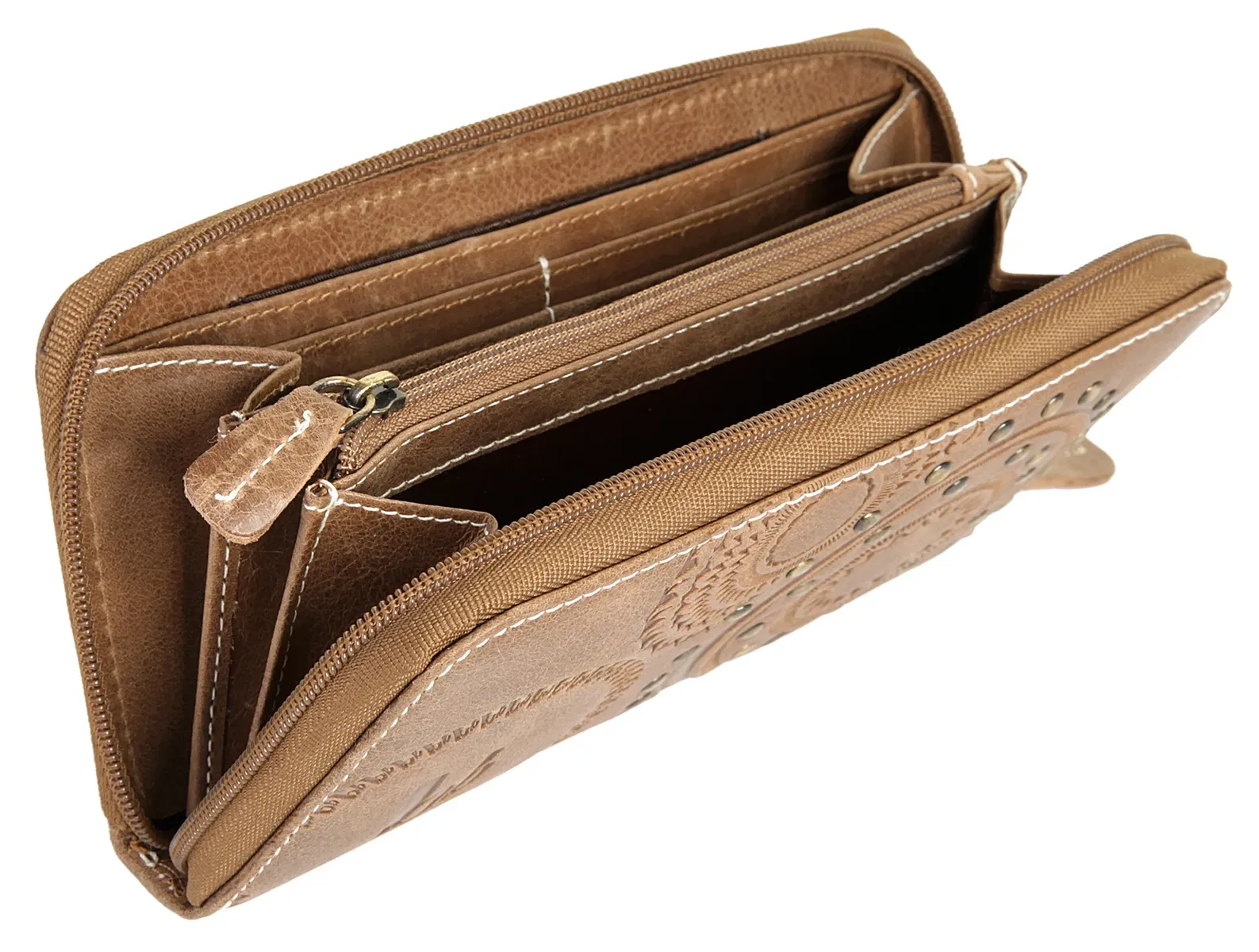 Модный кожаный кошелек от Bruno Banani. Детали заклепок, тисненые узоры и золотые аппликации придают винтажный вид. Многочисленные внутренние отделения впечатляют структурированным разделением - четкие и компактные!* изготовлены из высококачественной воловьей кожи* закрываются на молнию по периметру* 2 больших отделения для купюр* 2 дополнительных больших прорезных кармана внутри* 13 отделений для карт* большое отделение для монет на молнии* дополнительно отделение на молнии снаружи* модное структурированное тиснение и металлические заклепкиОсобенности: натуральная кожаДополнение к названию: натуральная кожаШирина: 19 смВес: 200Высота: 9,5 смГлубина: 2,5 смКоличество внутренних карманов: 2Количество отделений для карт: 13Количество отделений для купюр: 2Внешний материал: 100% коровья кожаРазмер: onesizeОсновная застежка: молнияВнутренний цвет: коричневыйВнутренний материал: синтетикаВнутренний вид: соответствующий цветВес: 0,2 кгОтделение для монет: есть (молния)Оптика Поверхность: слегка блестящаяРемень: нетОбъем: 0,1Ремень (длина в см): нетФормат: альбомный формат