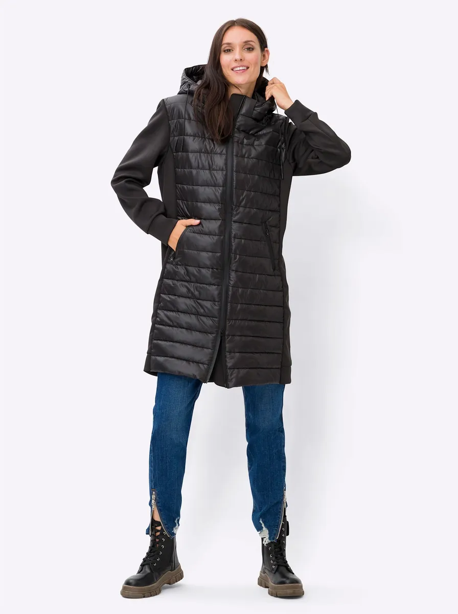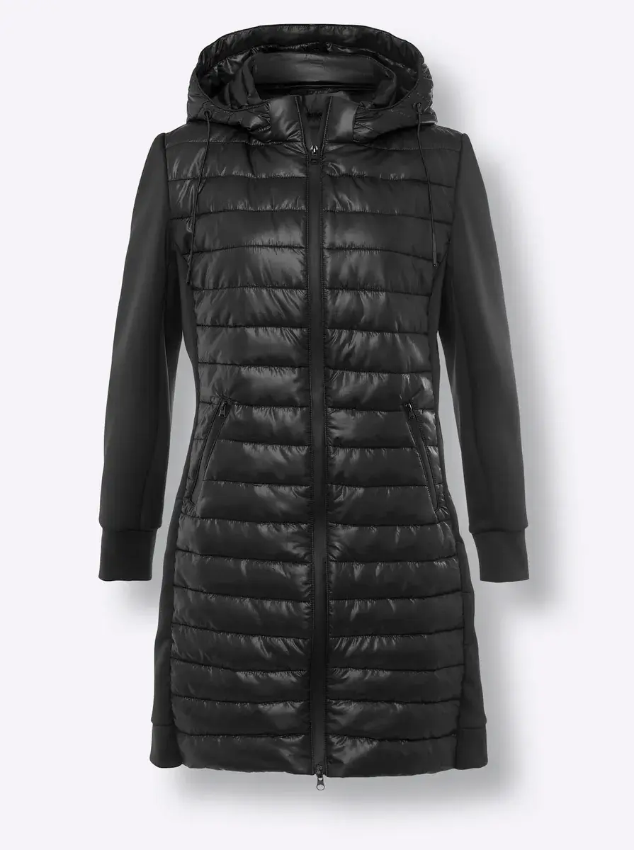Пальто высокого качества для подводного плавания со спортивным стеганым узором. С воротником-стойкой, съемным капюшоном и потайной двусторонней молнией. 2 кармана на молнии, длинные рукава с манжетами. 100% полиэстер. Вставка: 77% полиэстер, 23% эластан. Наполнитель: 100% полиэстер. Машинная стирка.