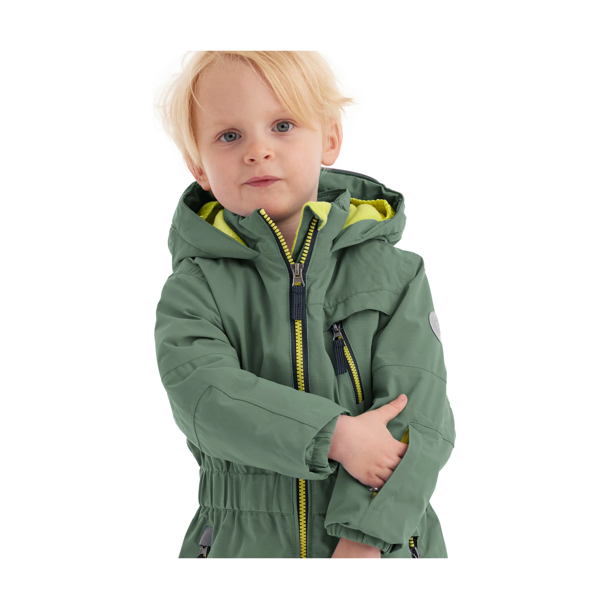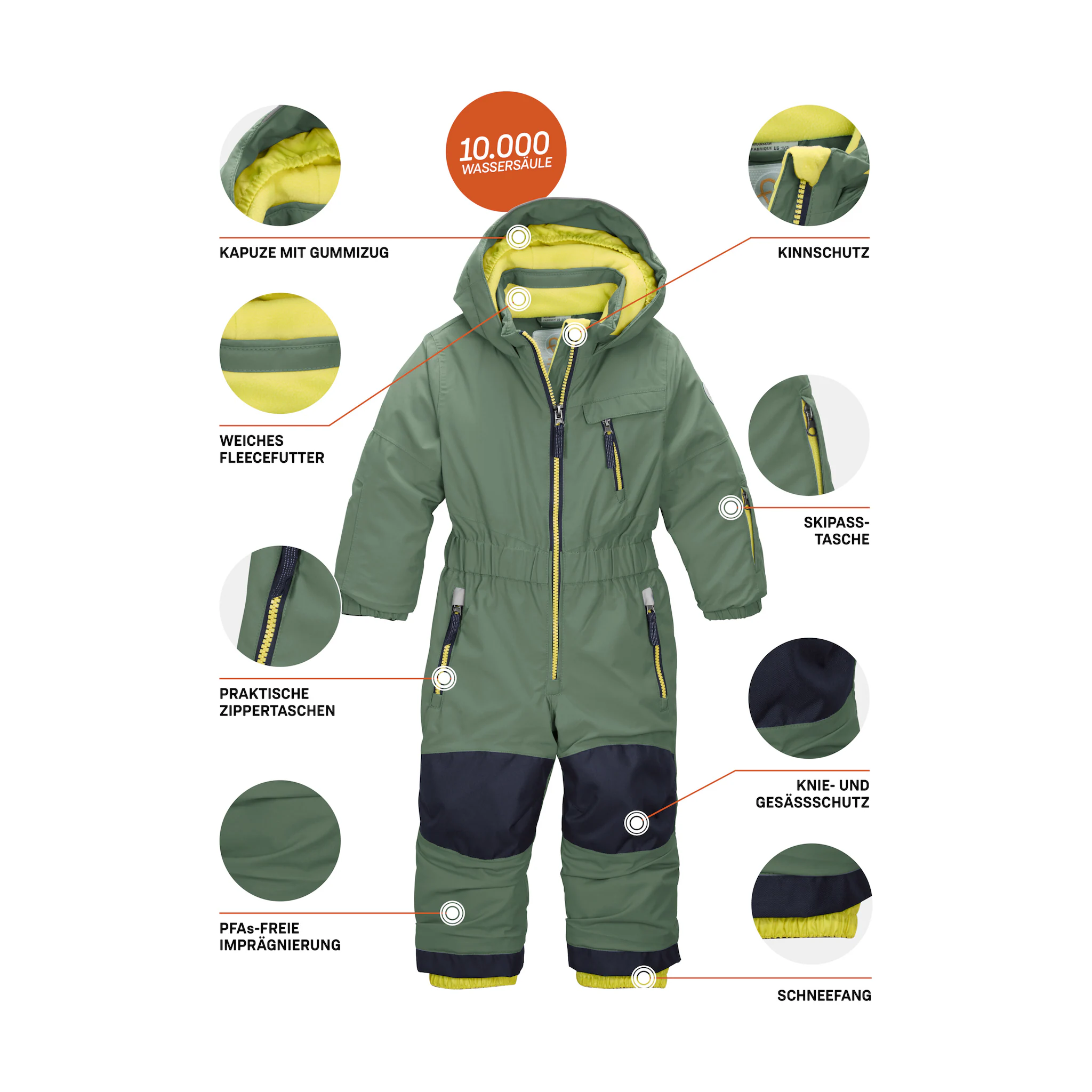 Новая коллекция First Instinct от killtec отличается продуманным дизайном и любовью к деталям. Зимнее веселье можно начать с лыжного комбинезона со светоотражающими элементами. Швы костюма проклеены, он водонепроницаем и одновременно дышащий. Снегозащиты на штанинах предотвращают проникновение влаги. Эластичная лента на капюшоне обеспечивает хорошую посадку. Костюм на флисовой подкладке сохраняет тепло и уют. Важные вещи можно хранить в трех карманах. Благодаря практичной вшитой именной бирке лыжный костюм не потеряется в детском саду. Функция роста позволяет удлинить рукава и штанины примерно на 4 см, что означает, что костюм можно использовать и в следующем размере одежды. Для killtec особенно важно сделать коллекции более устойчивыми и ориентированными на будущее. Поэтому этот комбинезон был пропитан веществами, не содержащими фтора.