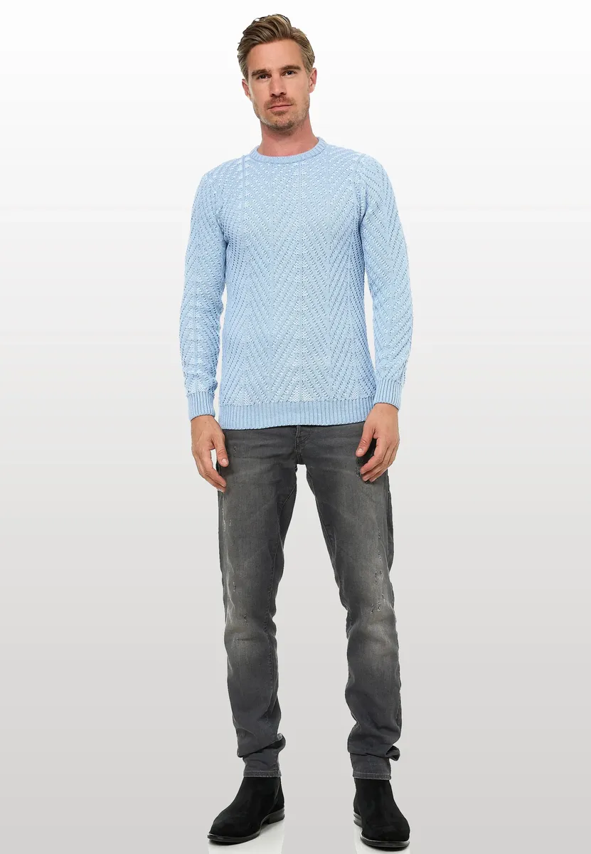 Модный мужской свитер Rusty Neal впечатляет модным вязаным дизайном. Он также изготовлен из мягкой, высококачественной и эластичной хлопчатобумажной ткани, что гарантирует абсолютно идеальную посадку. Благодаря качественному исполнению материалов после стирки цвет не теряется, а усадка свитера больше не проблема! Этот универсальный свитер гарантирует стильный внешний вид, как для элегантного ношения в офисе, так и для повседневного ношения днем. Он впечатляюще показывает, насколько современным и в то же время вневременным может быть свитер. Рост модели 1,85 м, вес около 80 кг, размер M (средний).