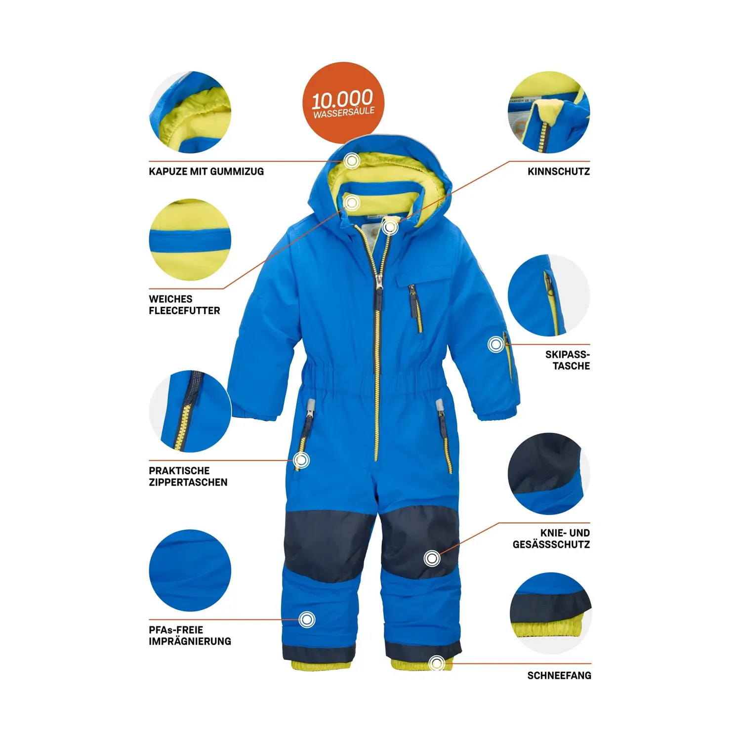 Новая коллекция First Instinct от killtec отличается продуманным дизайном и любовью к деталям. Зимнее веселье можно начать с лыжного комбинезона со светоотражающими элементами. Швы костюма проклеены, он водонепроницаем и одновременно дышащий. Снегозащиты на штанинах предотвращают проникновение влаги. Эластичная лента на капюшоне обеспечивает хорошую посадку. Костюм на флисовой подкладке сохраняет тепло и уют. Важные вещи можно хранить в трех карманах. Благодаря практичной вшитой именной бирке лыжный костюм не потеряется в детском саду. Функция роста позволяет удлинить рукава и штанины примерно на 4 см, что означает, что костюм можно использовать и в следующем размере одежды. Для killtec особенно важно сделать коллекции более устойчивыми и ориентированными на будущее. Поэтому этот комбинезон был пропитан веществами, не содержащими фтора.